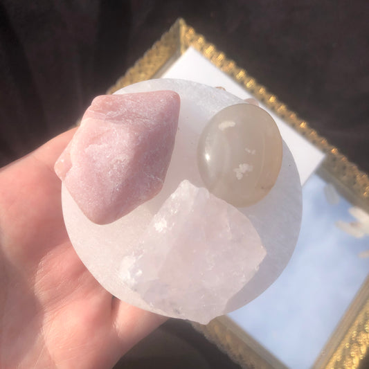 DELUXE Raw Crystal Set on Selenite Charging Plate