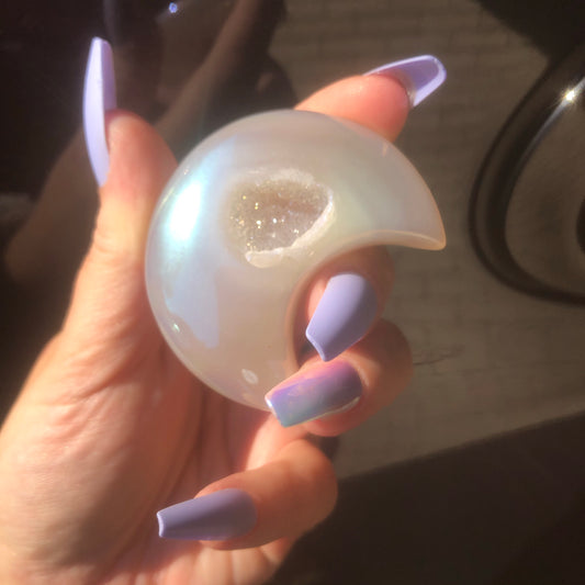 WOW! Beautiful Rainbow Aura Moon Agate Geode