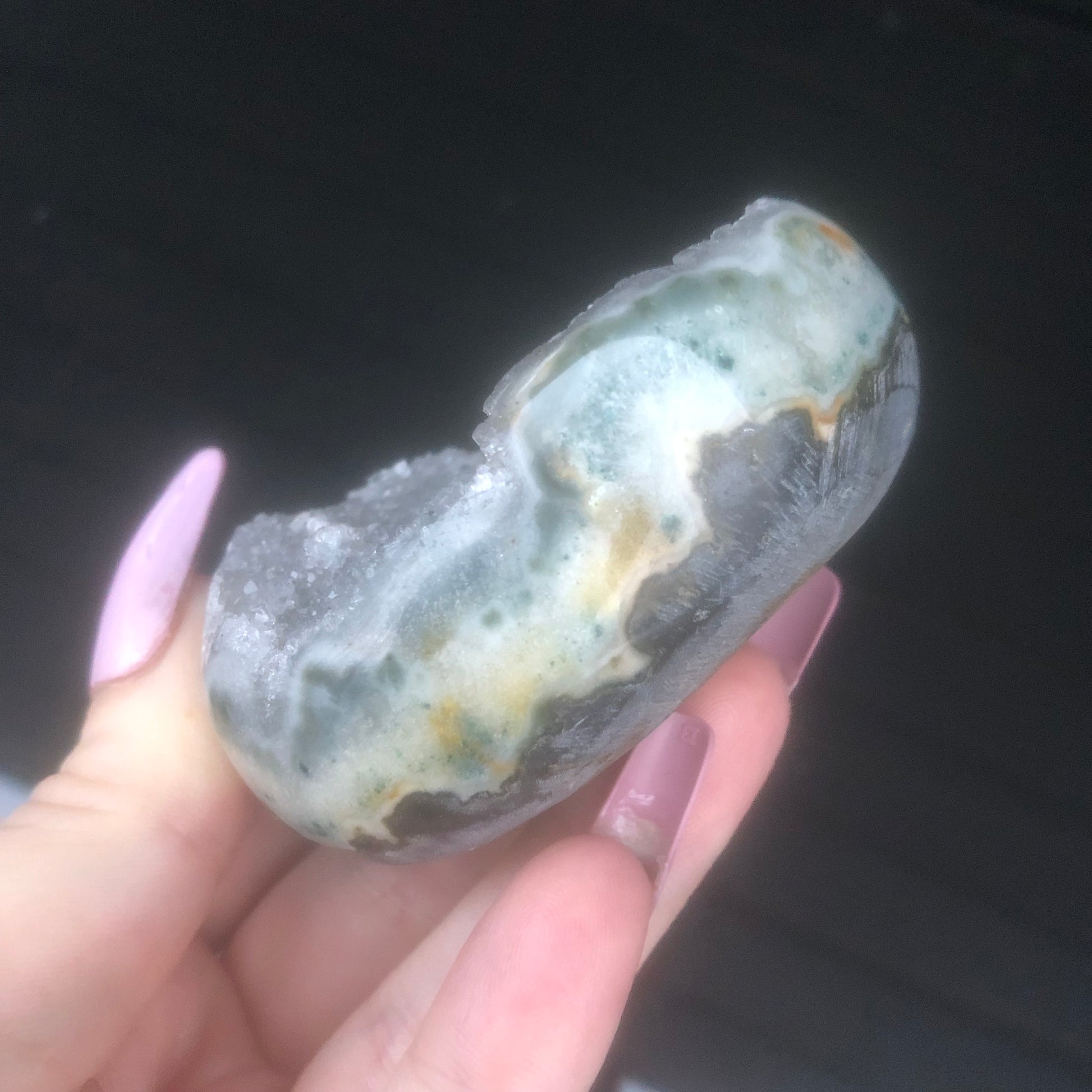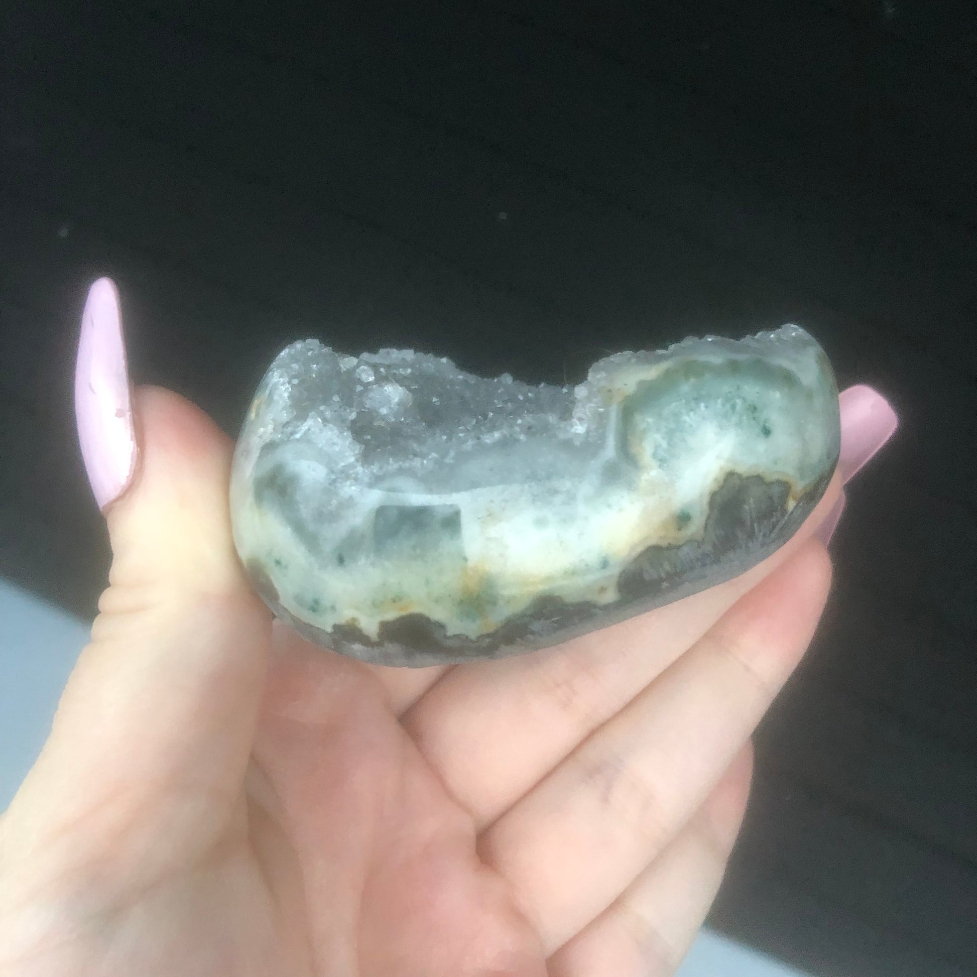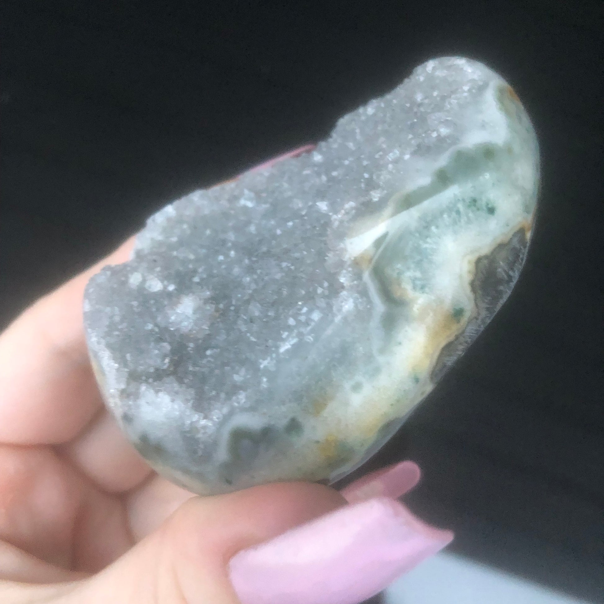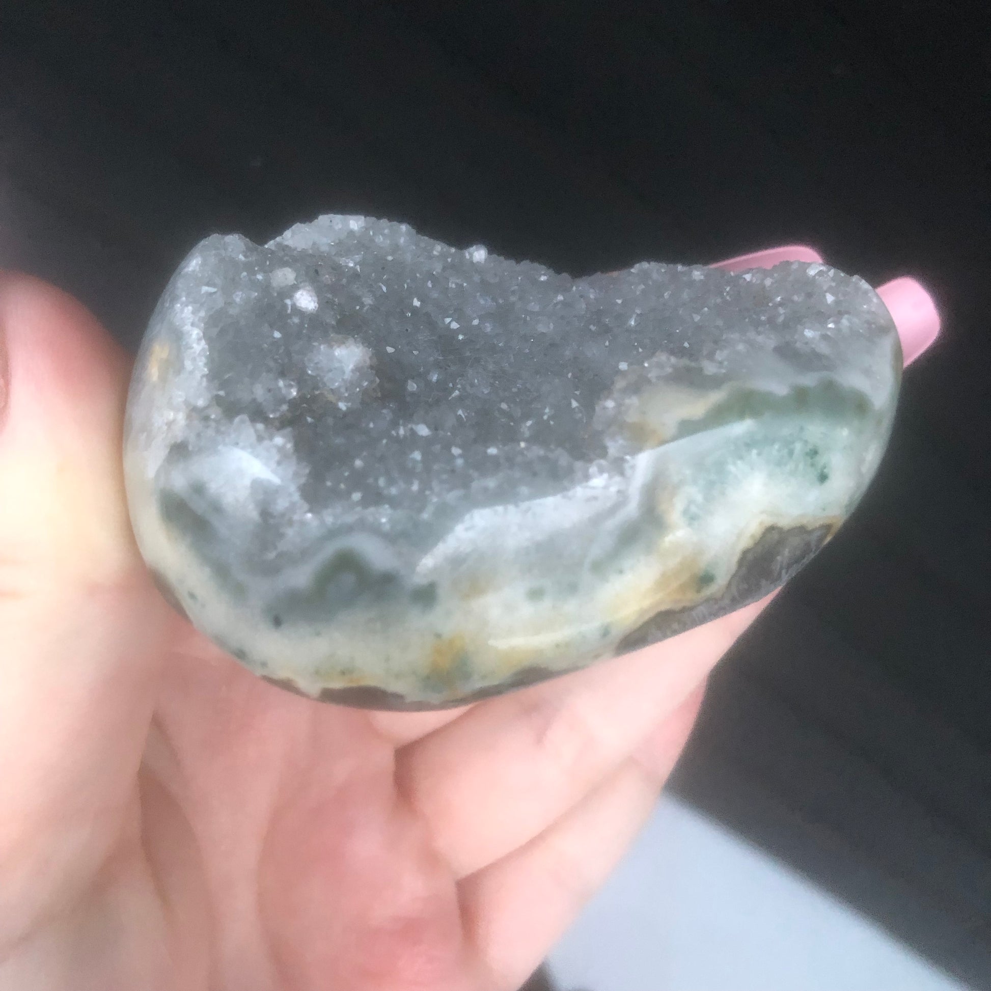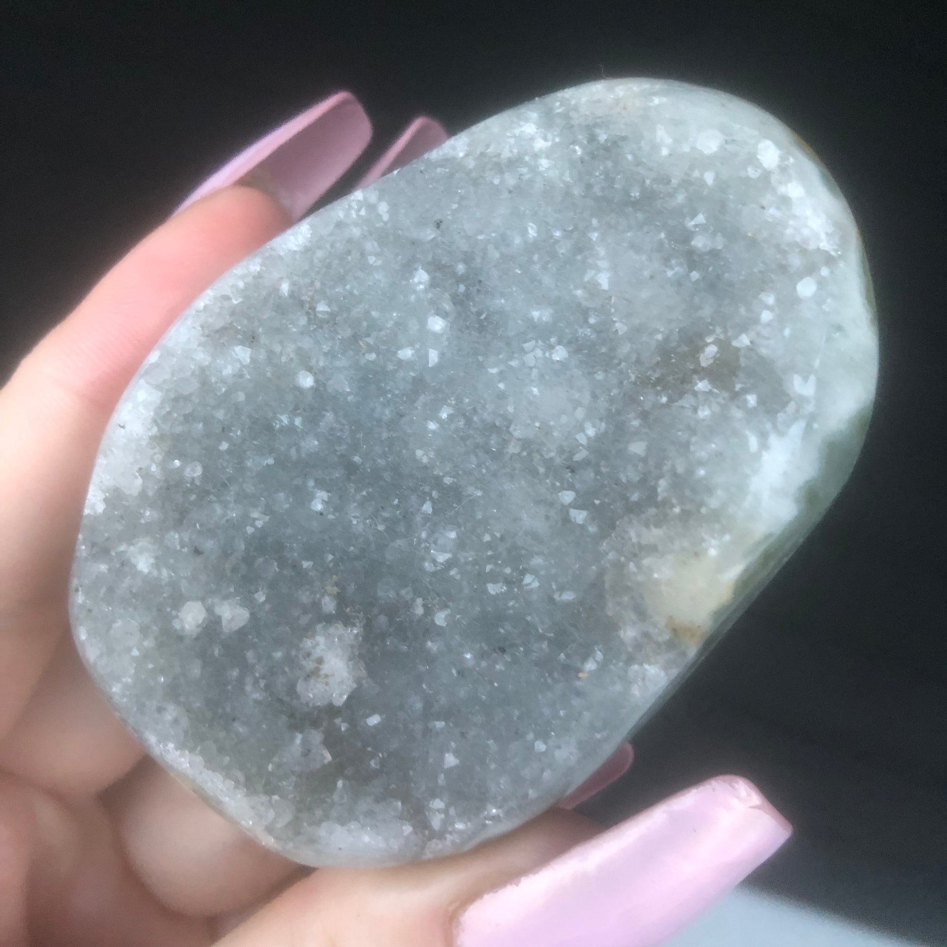 100% RARE Genuine Natural Grey High Grade Gray Druzy Amethyst Palmstone Geode from Uruguay