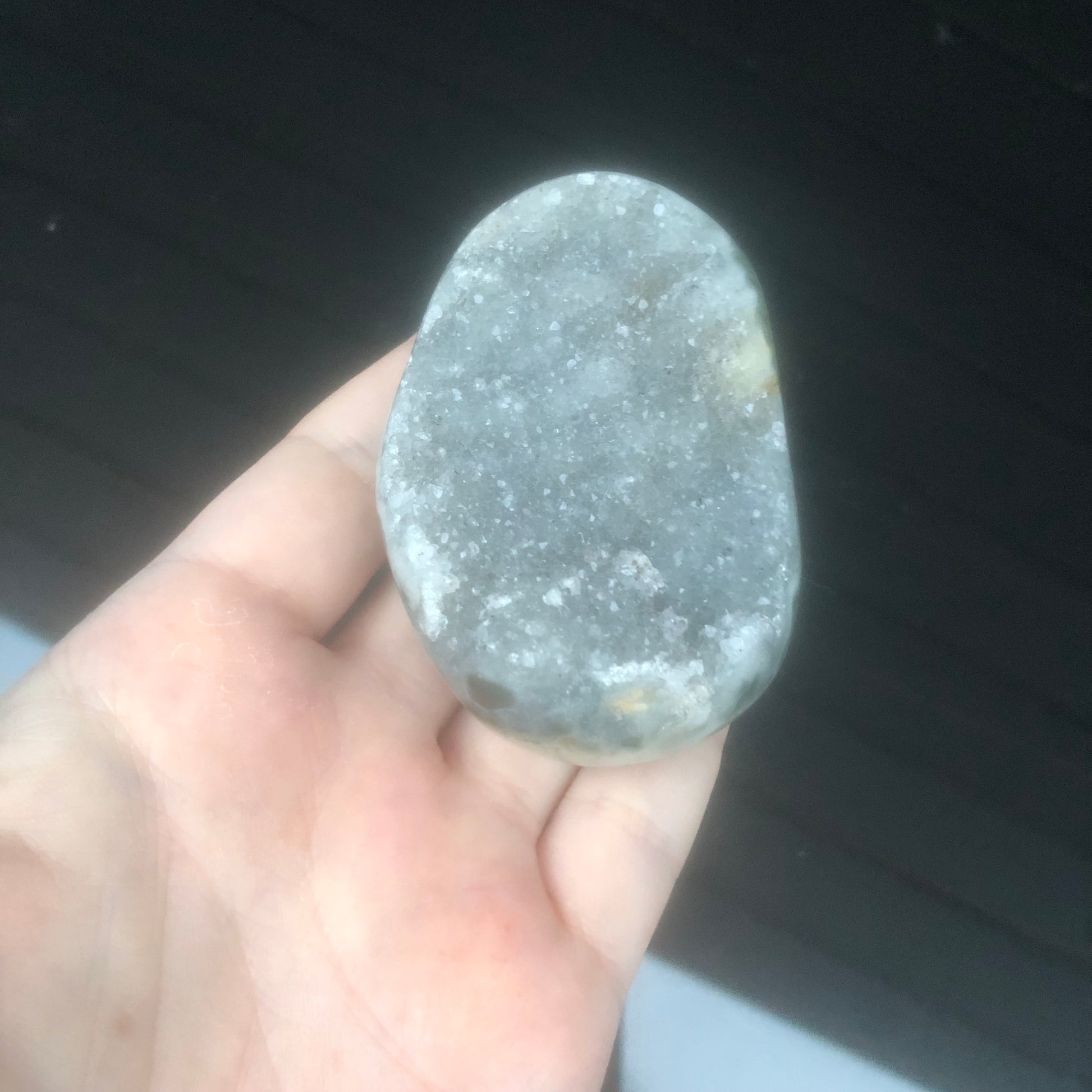 Rare Grey Druzy Rainbow Amethyst Palmstone from Uruguay