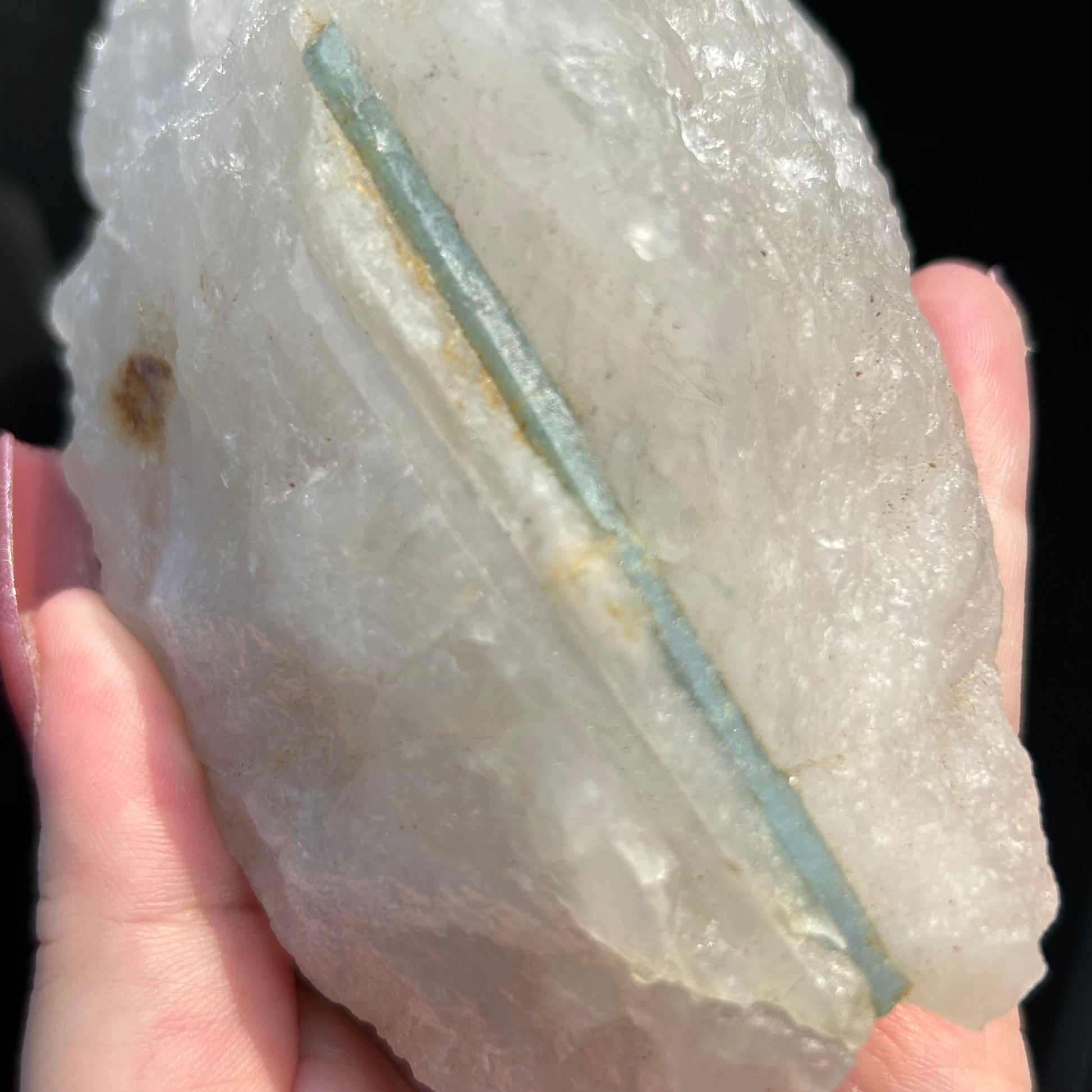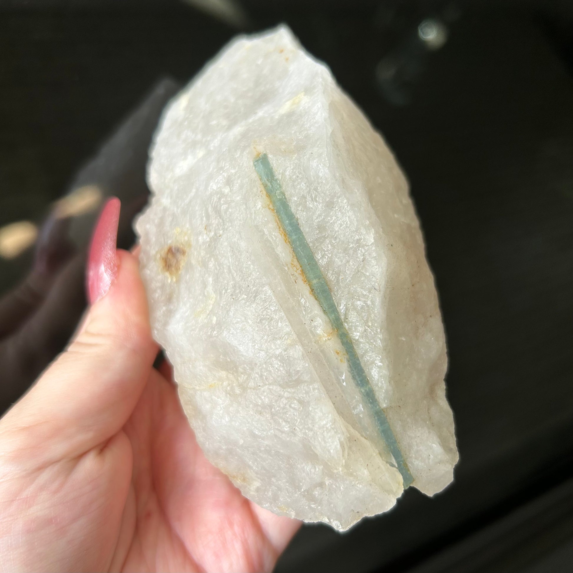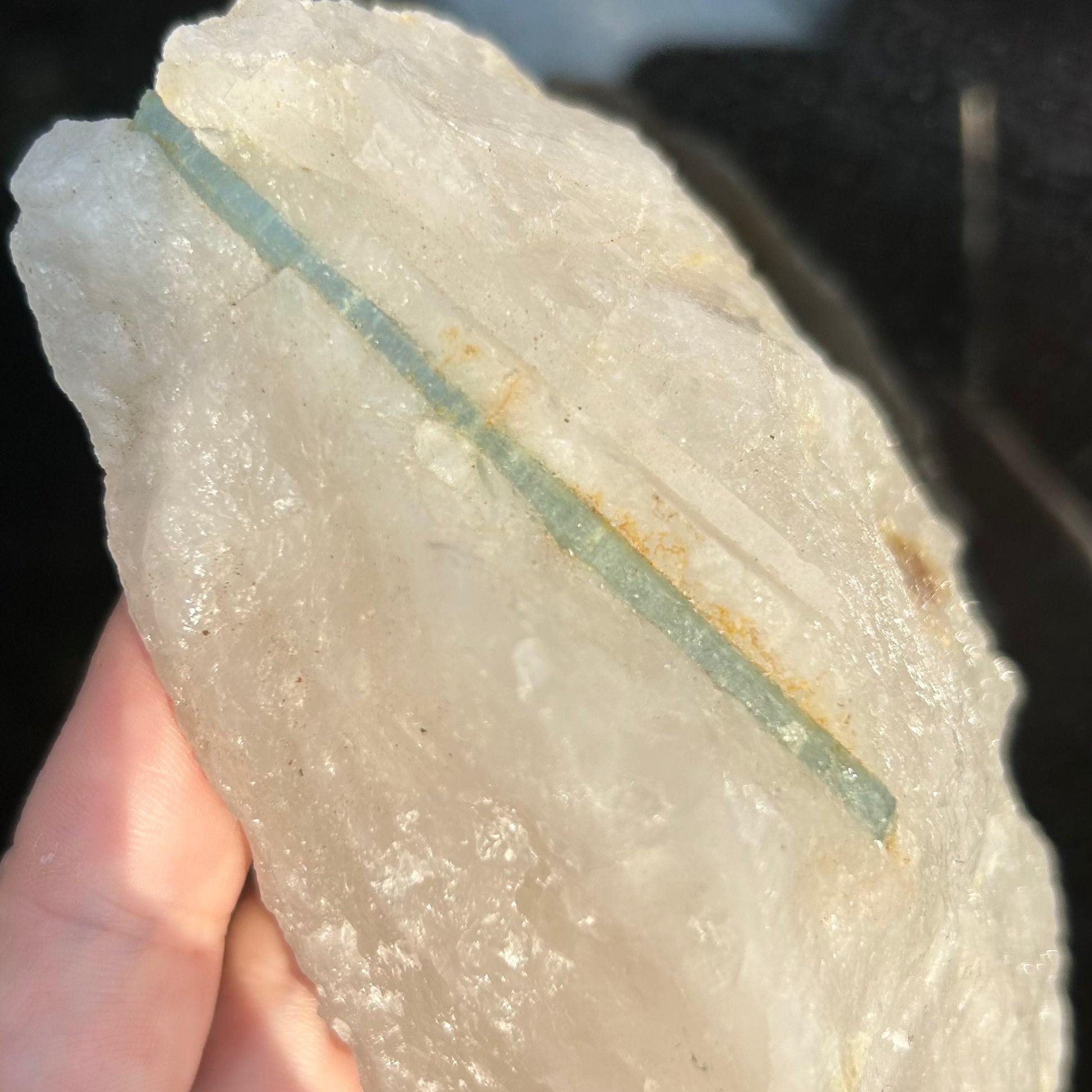 100% Genuine Natural Blue Tourmaline on Quartz Matrix from Brazil, Ethically Sourced