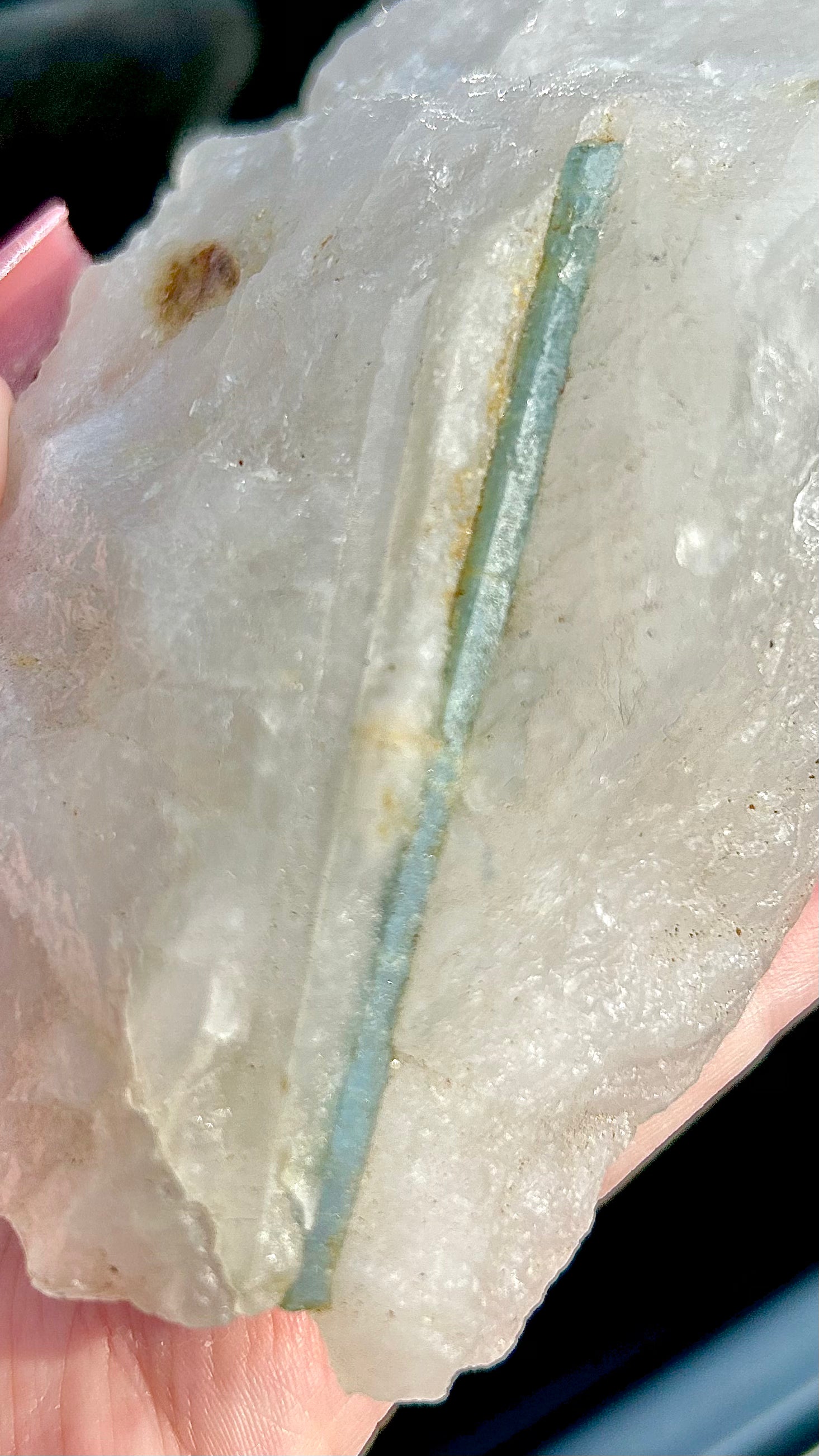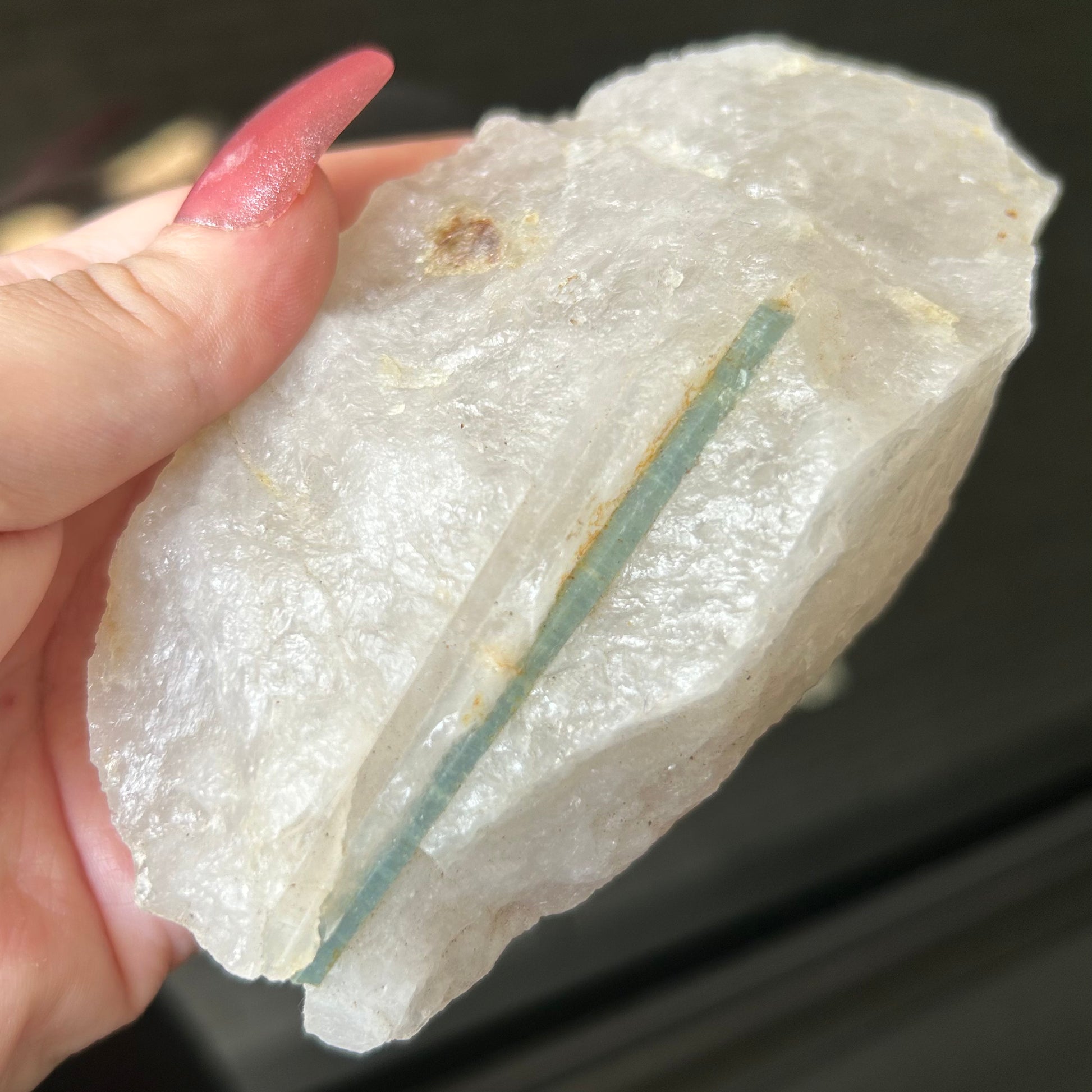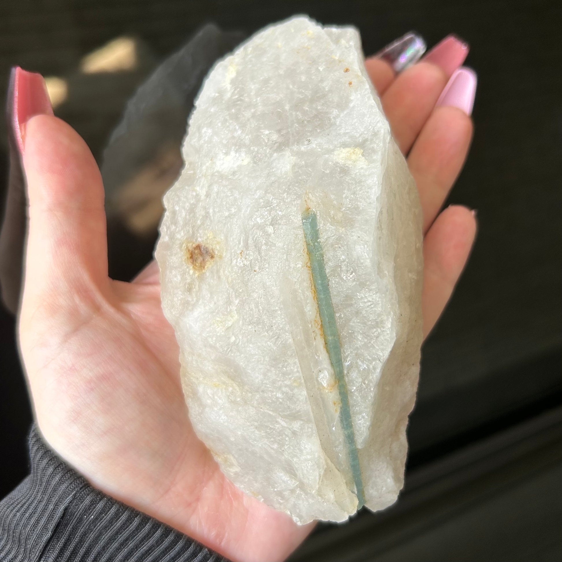 100% Genuine Natural Blue Tourmaline on Quartz Matrix from Brazil, Ethically Sourced