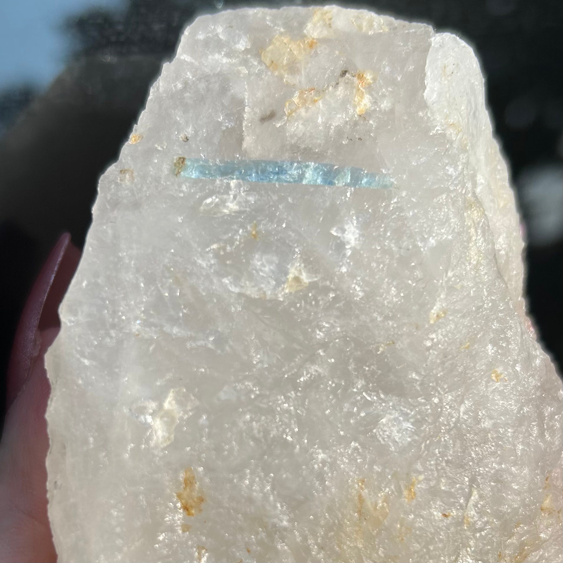Blue aquamarine is a crystal known for its calming influence, promoting clarity of thought and enhancing communication.