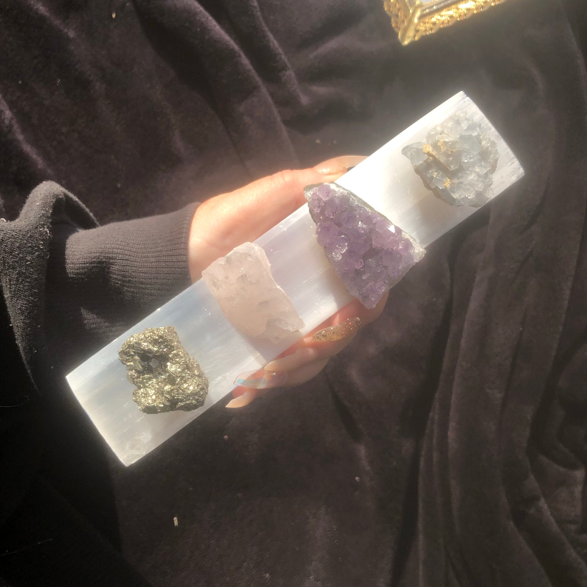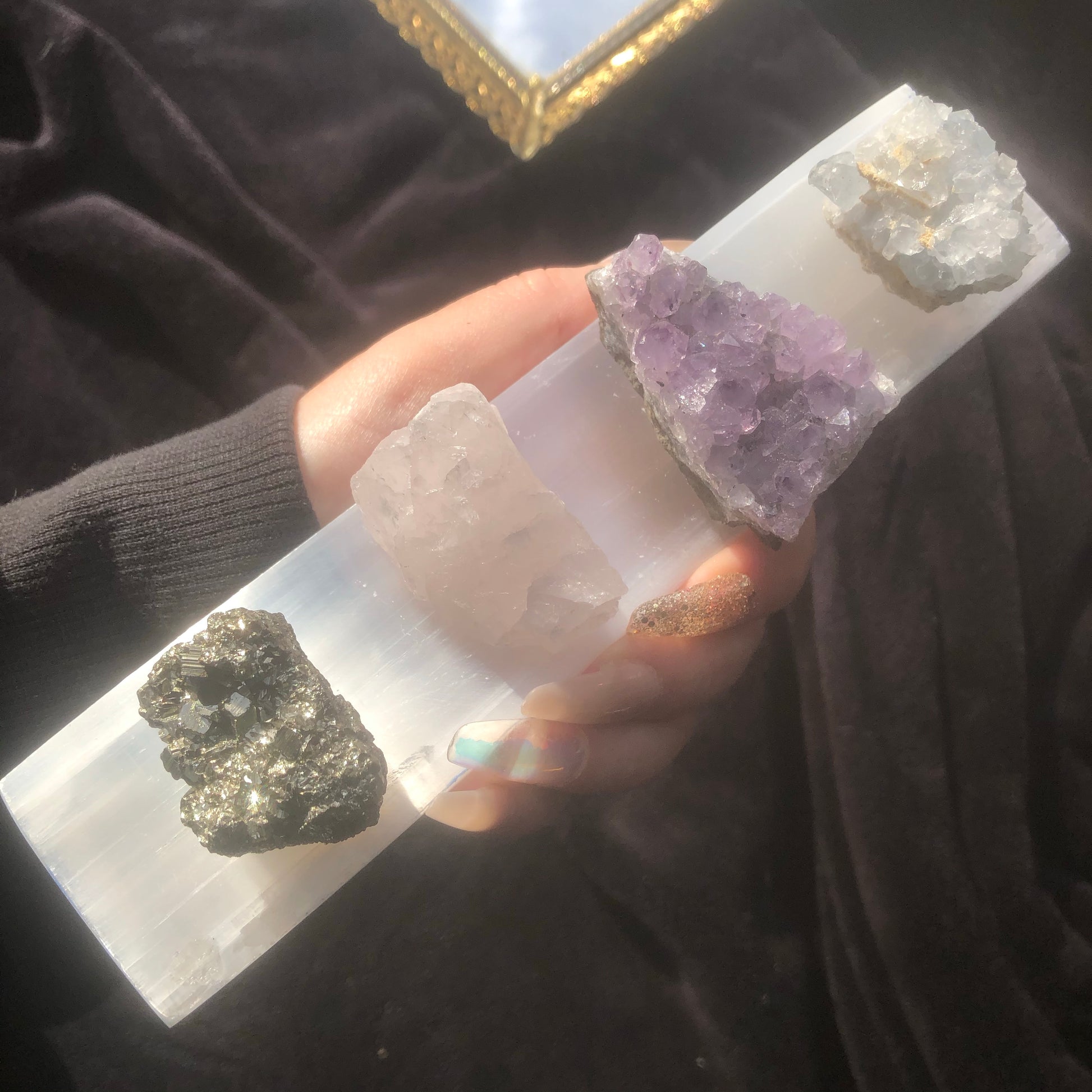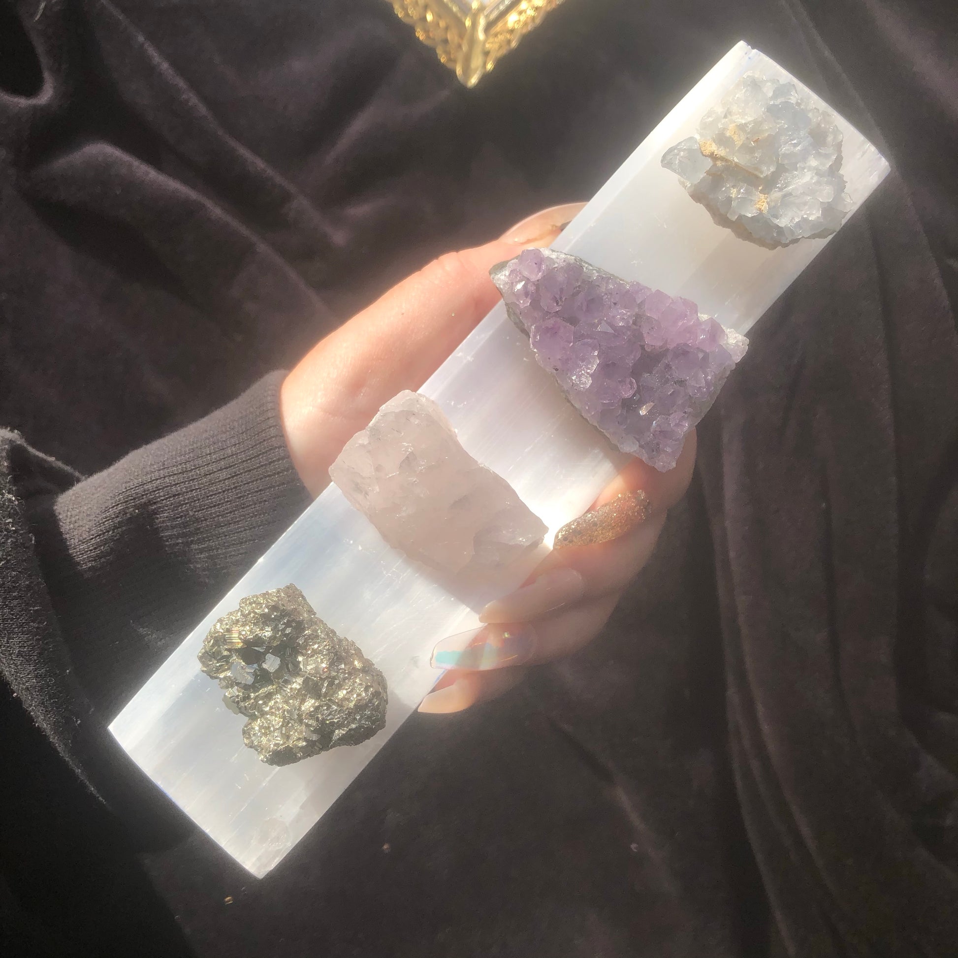DELUXE Raw Crystal Set on Selenite Charging Plate