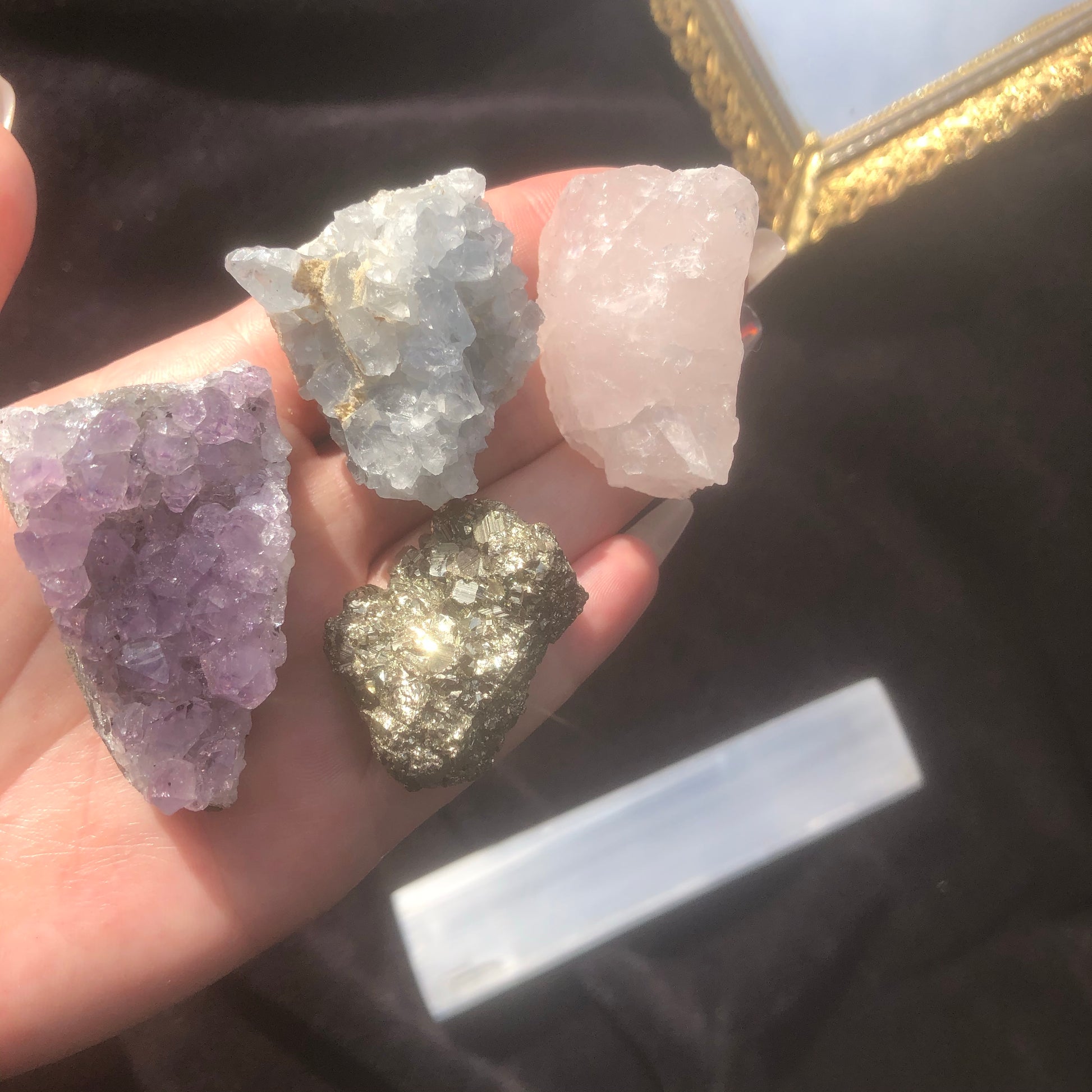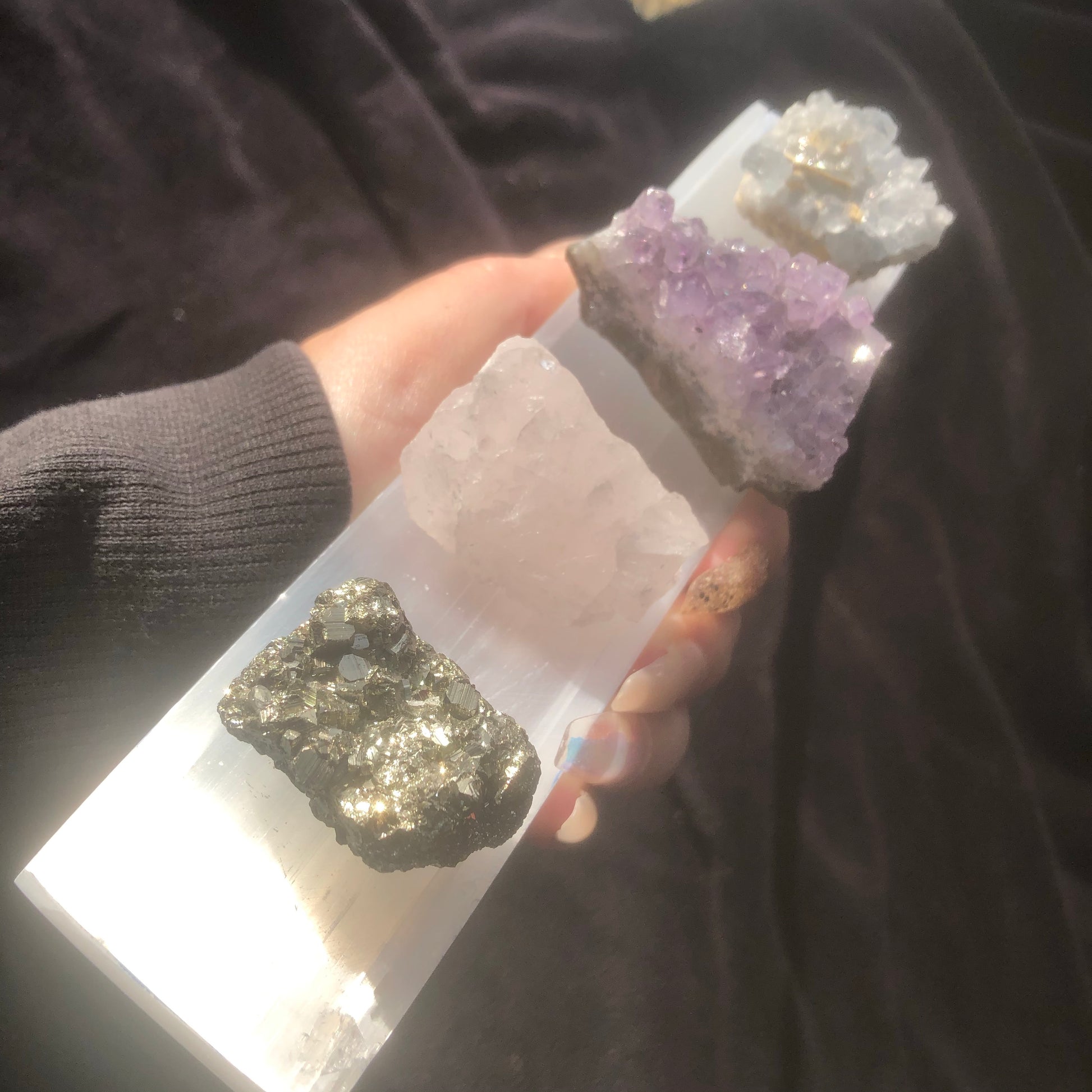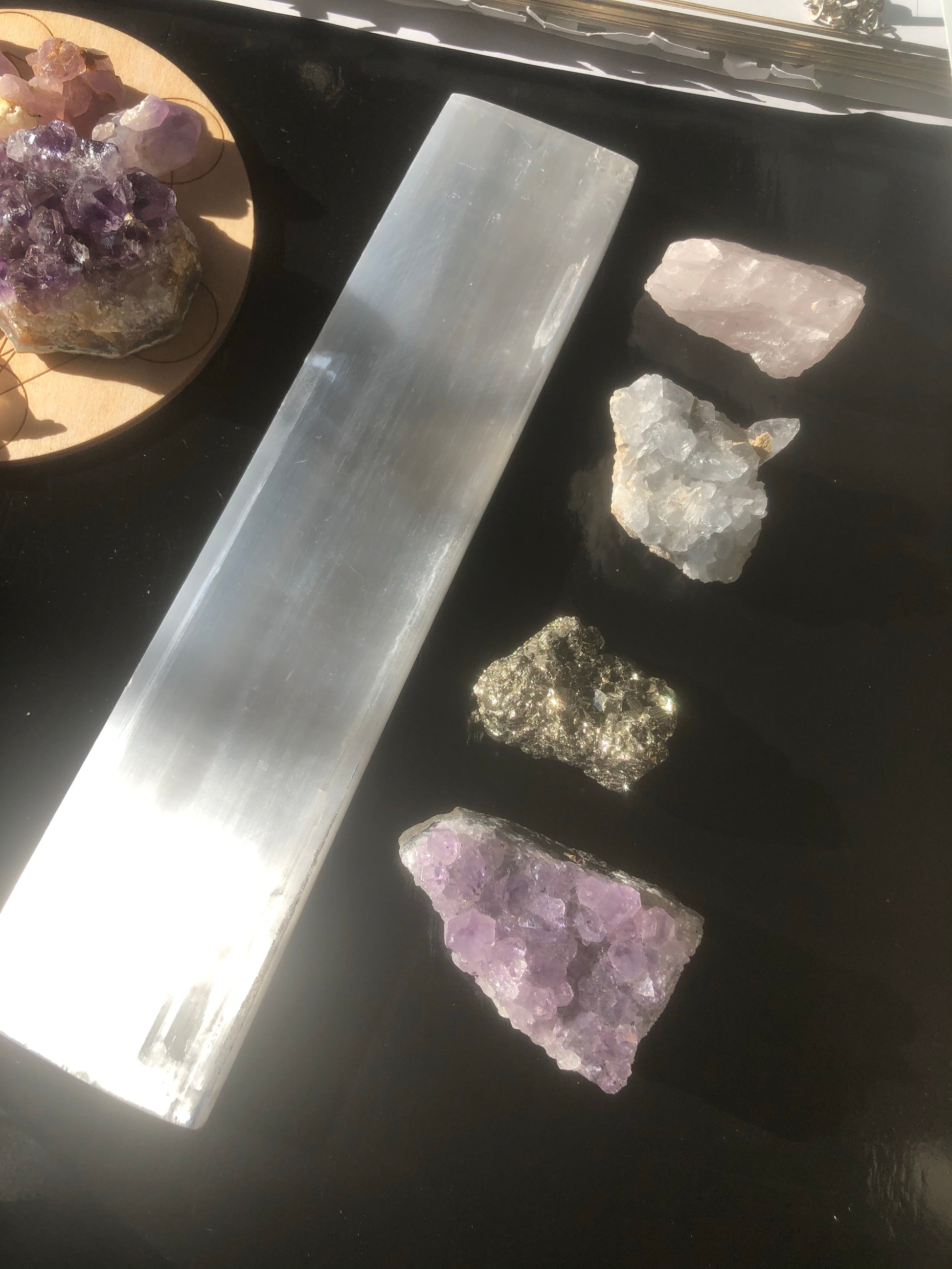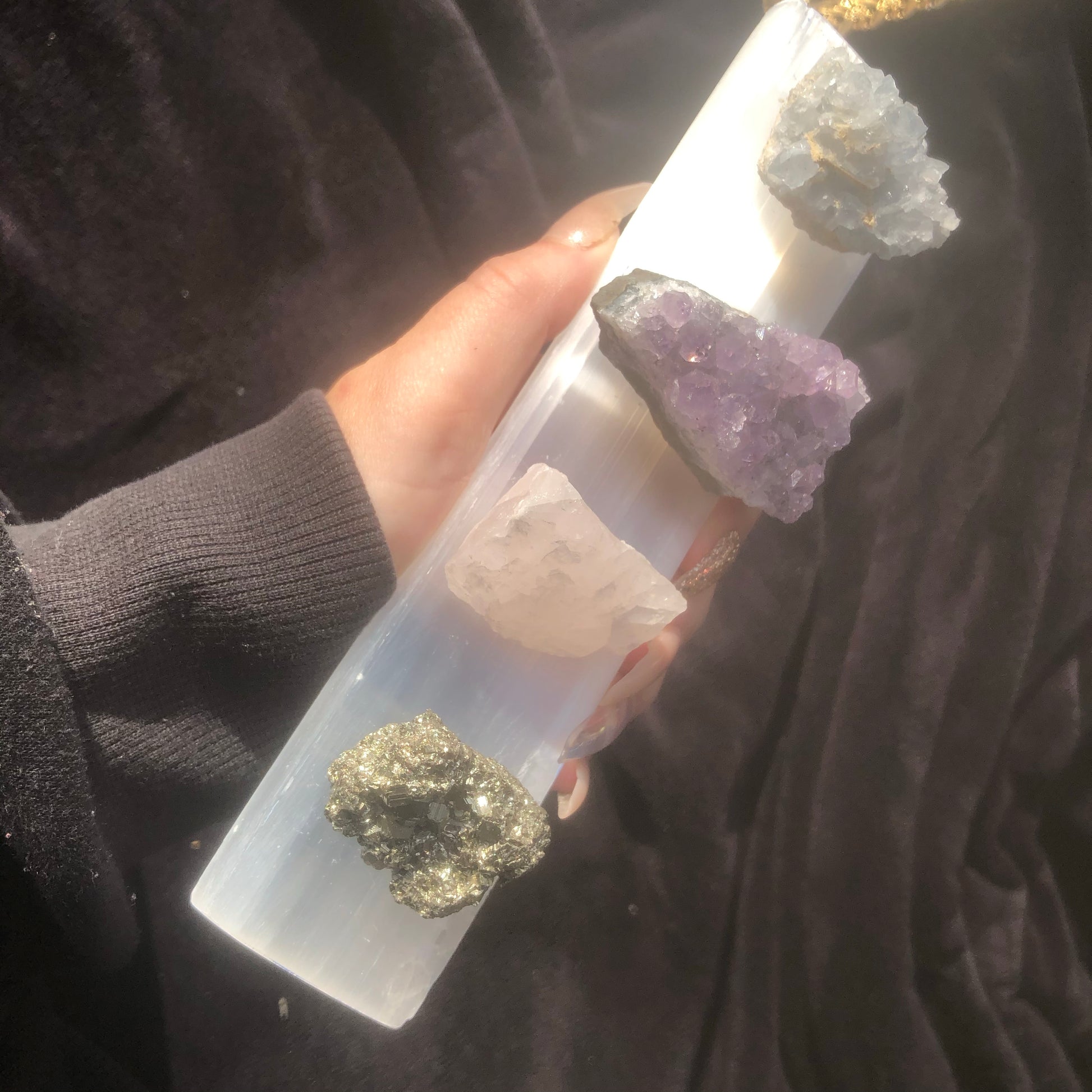 DELUXE Raw Crystal Set on Selenite Charging Plate