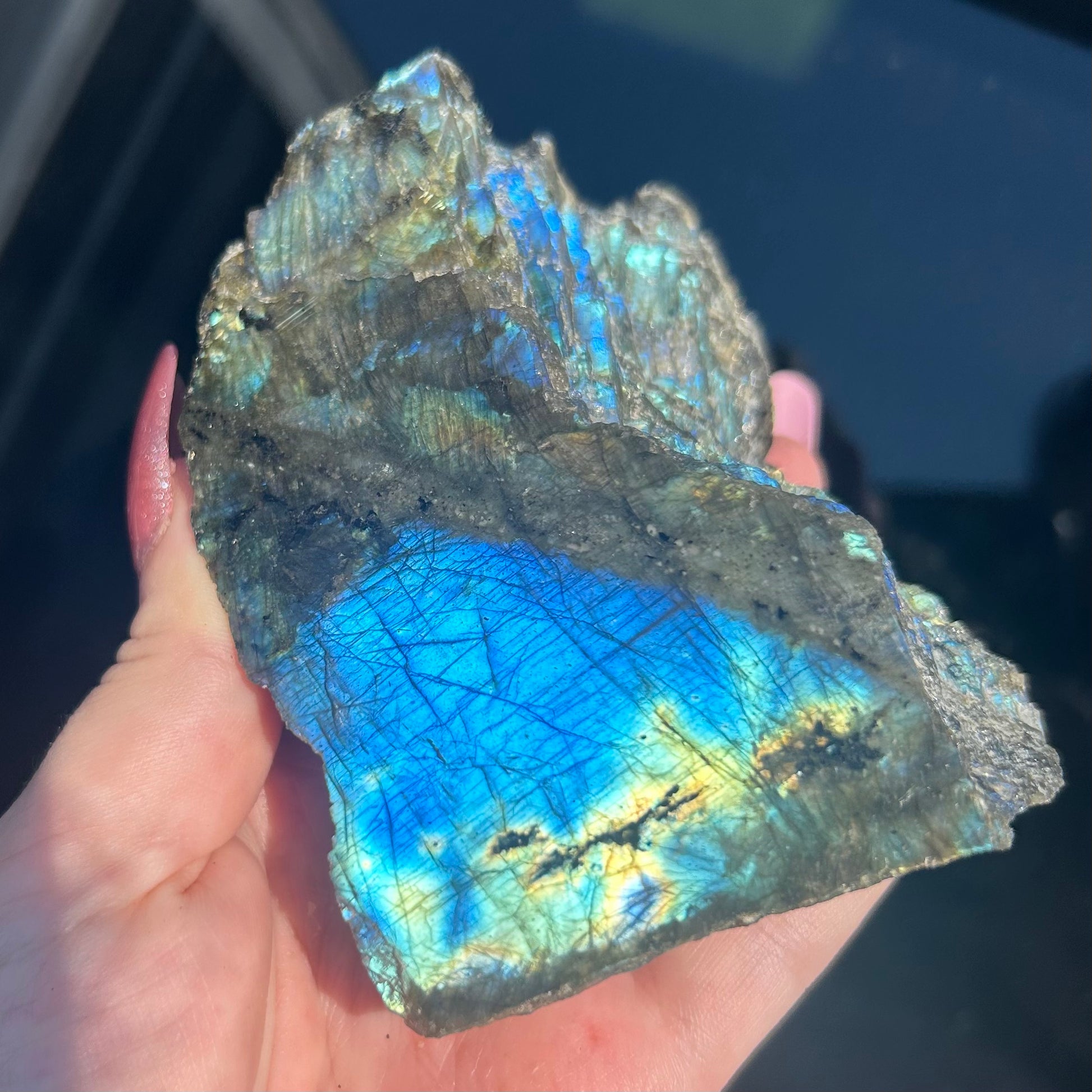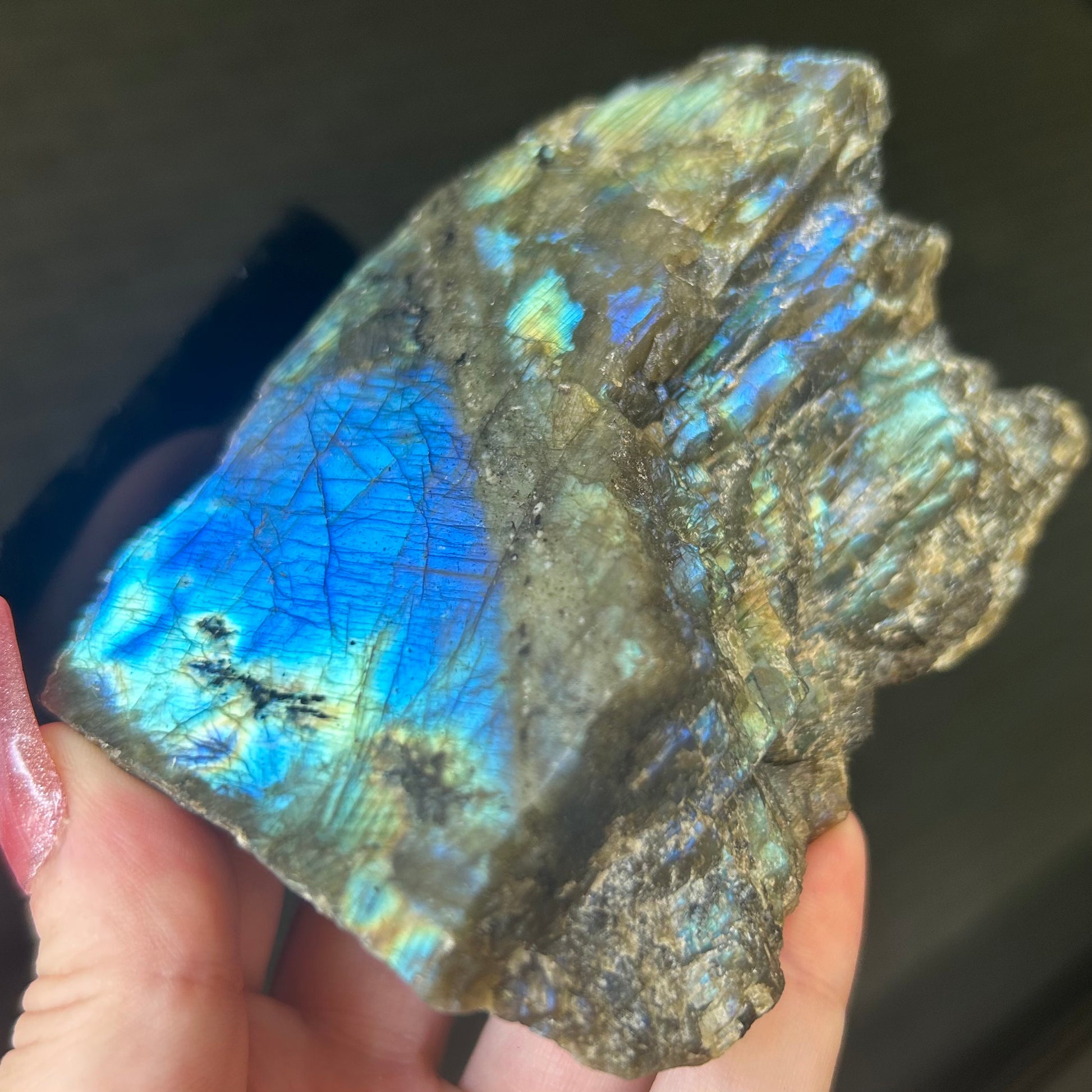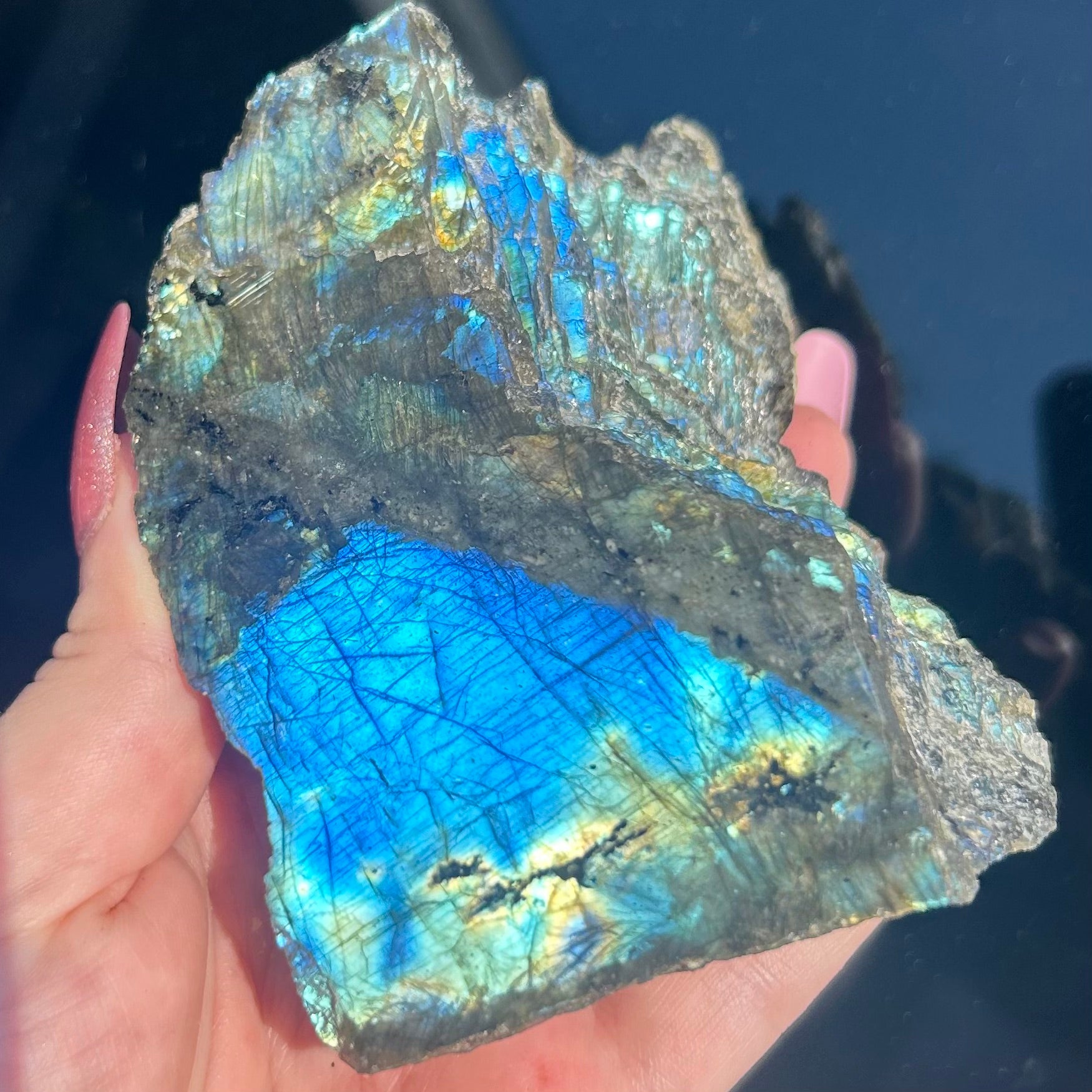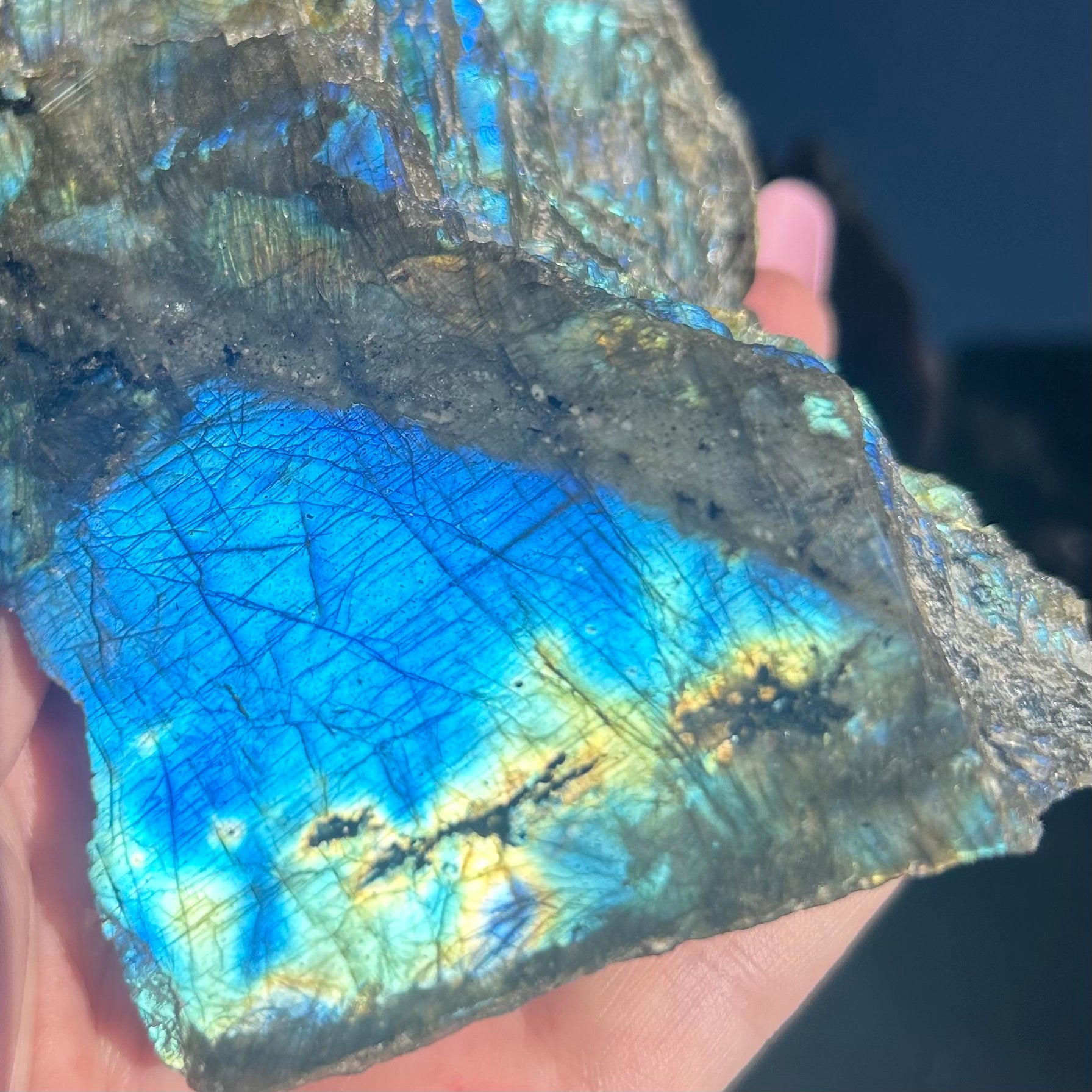 100% Natural Intense Electric Blue Flash Labradorite Thick Chunk