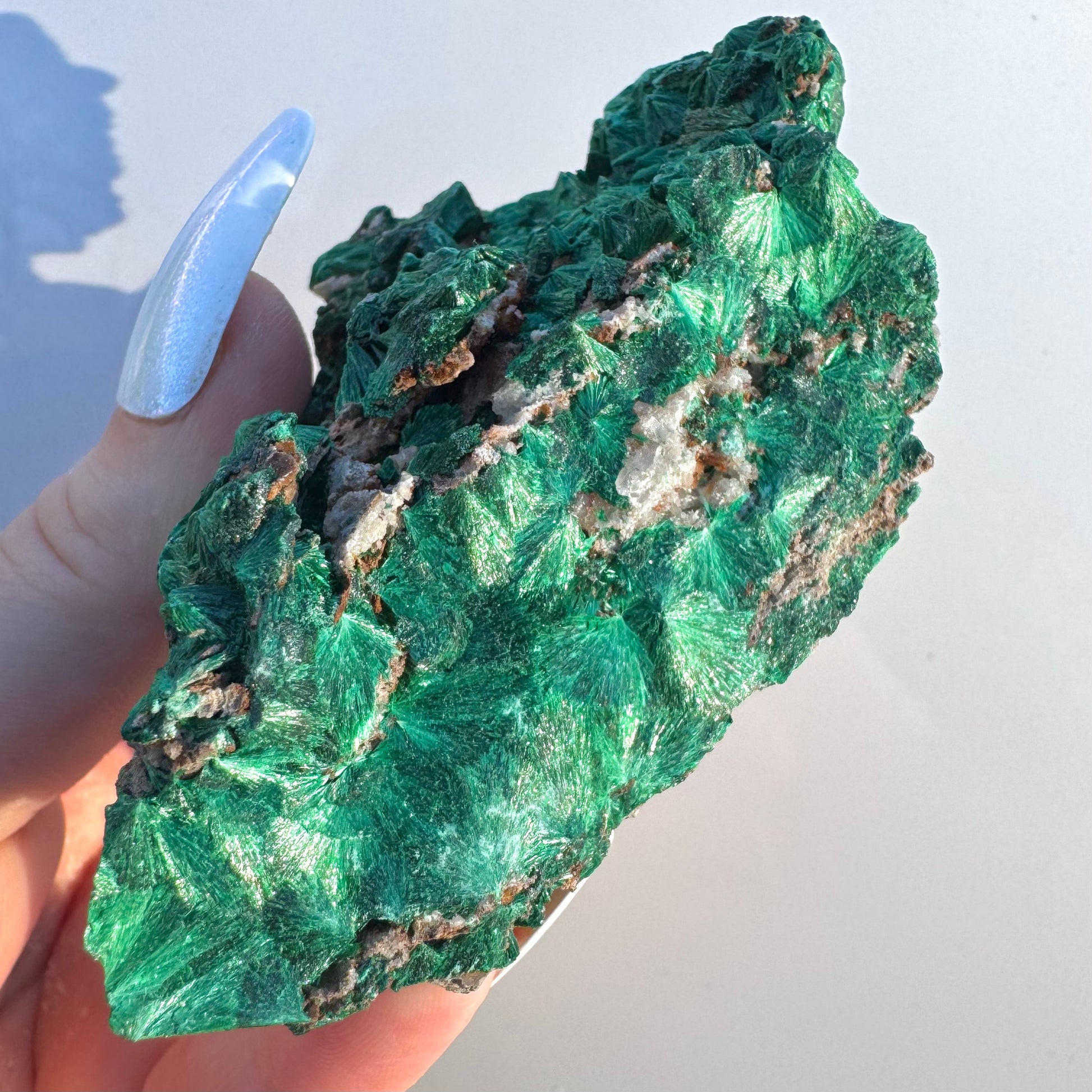 Malachite is a vibrant green stone known for its stunning swirls and dynamic energy. Revered for centuries, this powerful crystal is considered a stone of transformation, aiding in personal growth, healing, and emotional release. Its rich, earthy hue connects deeply with the heart chakra, promoting love, compassion, and emotional balance.