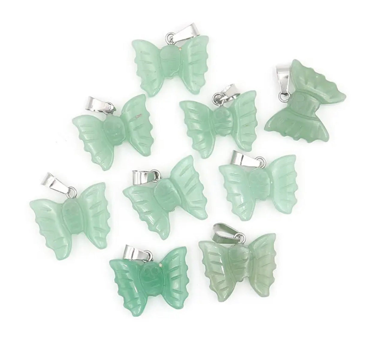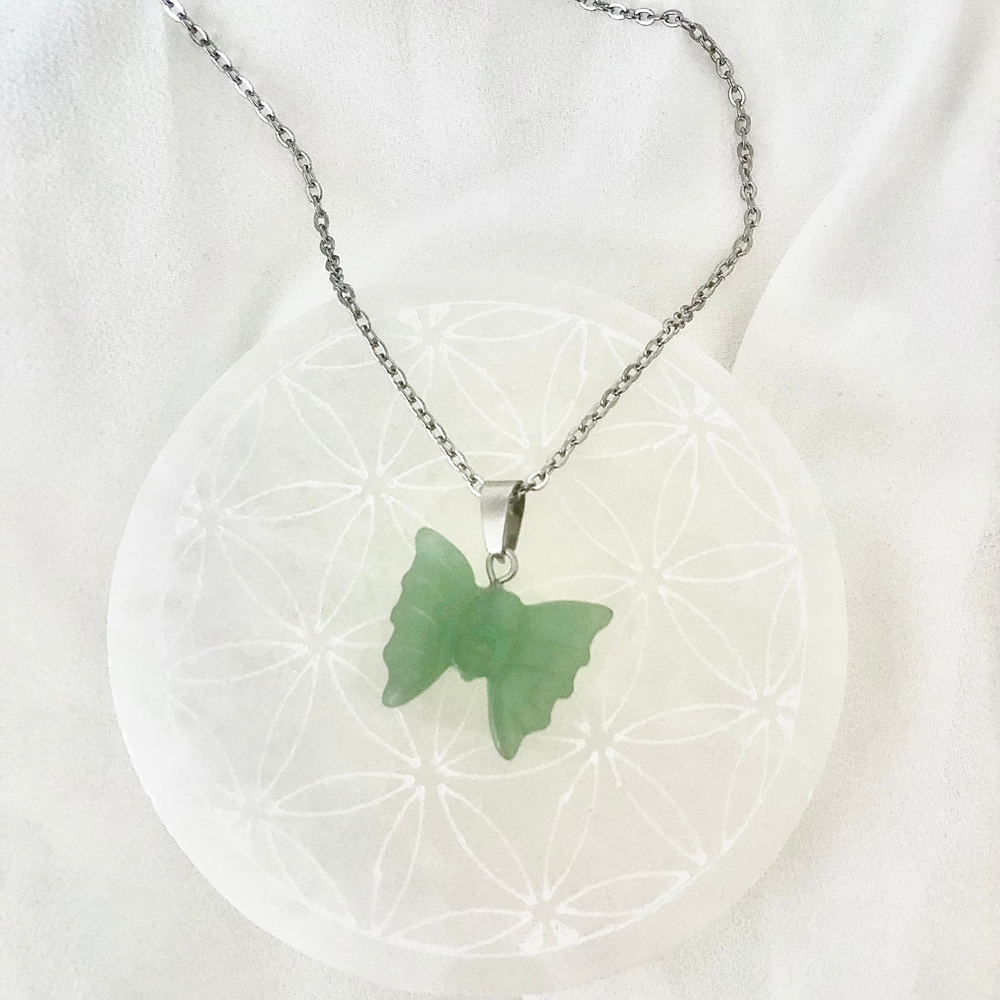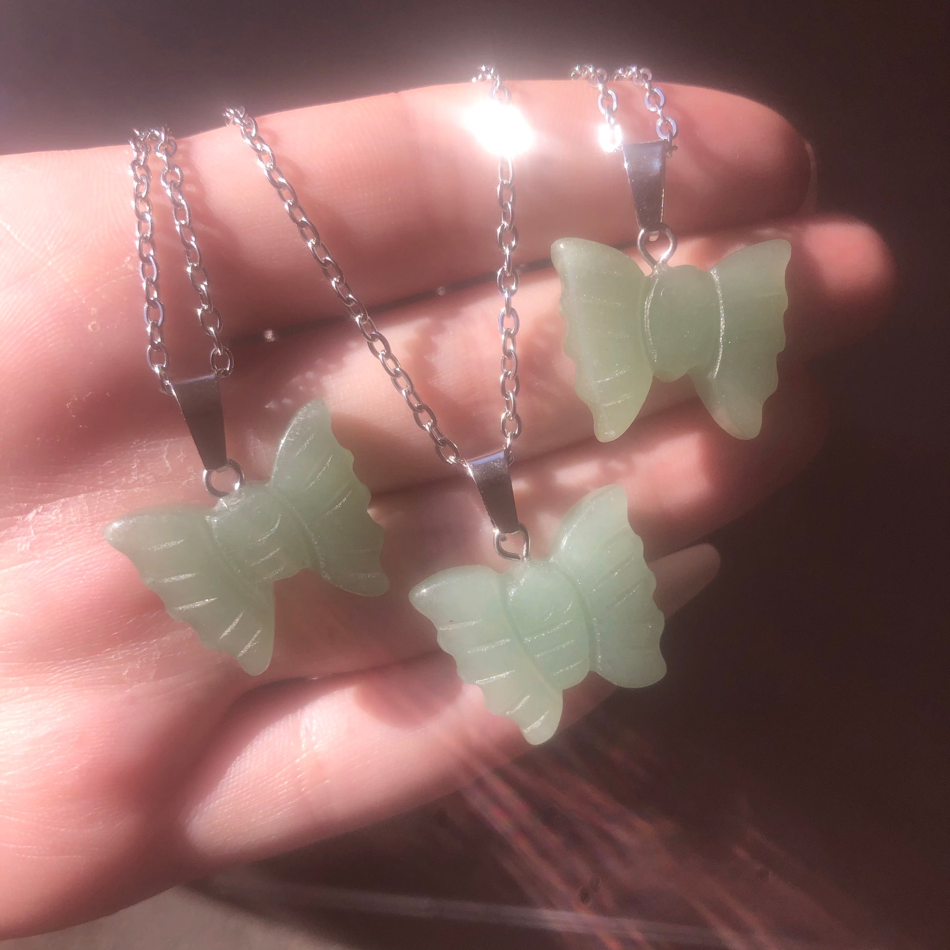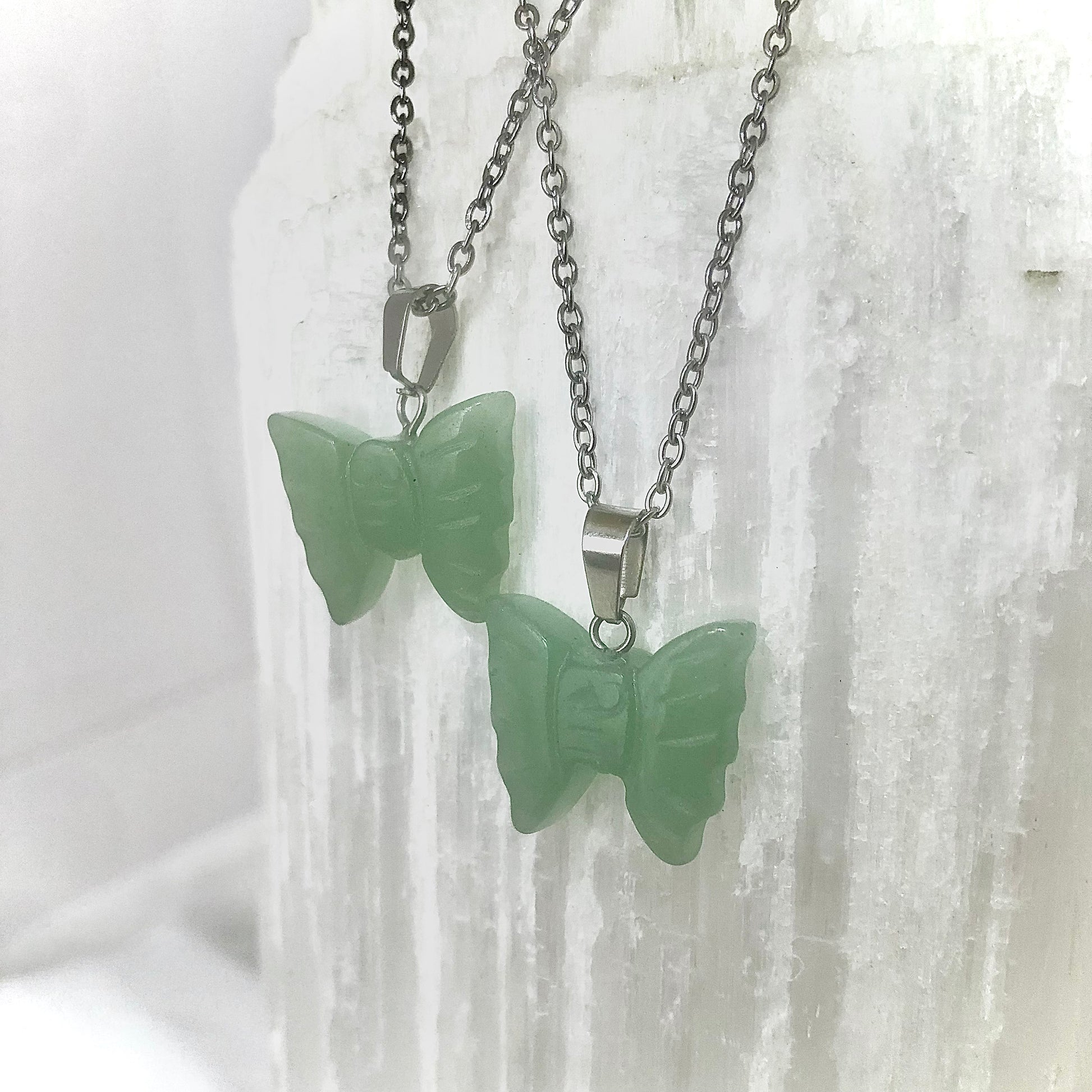 -Carved Natural Green Aventurine Stone Butterfly Necklace