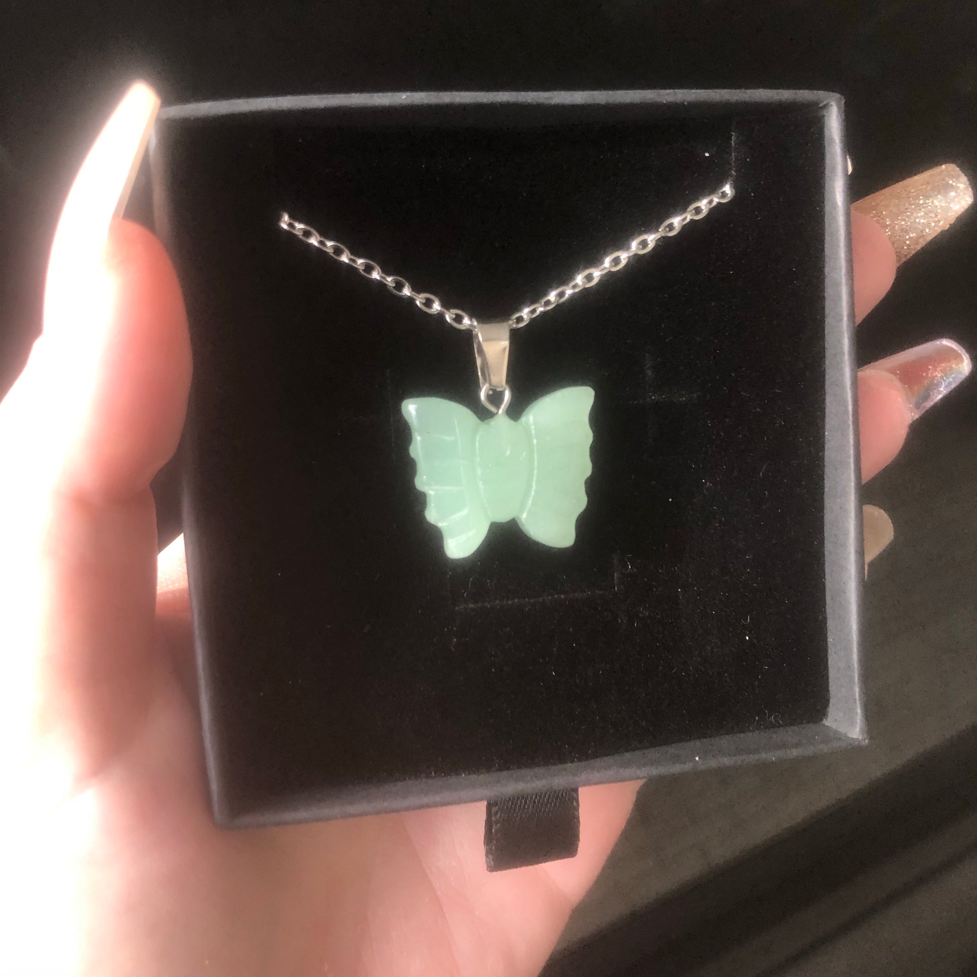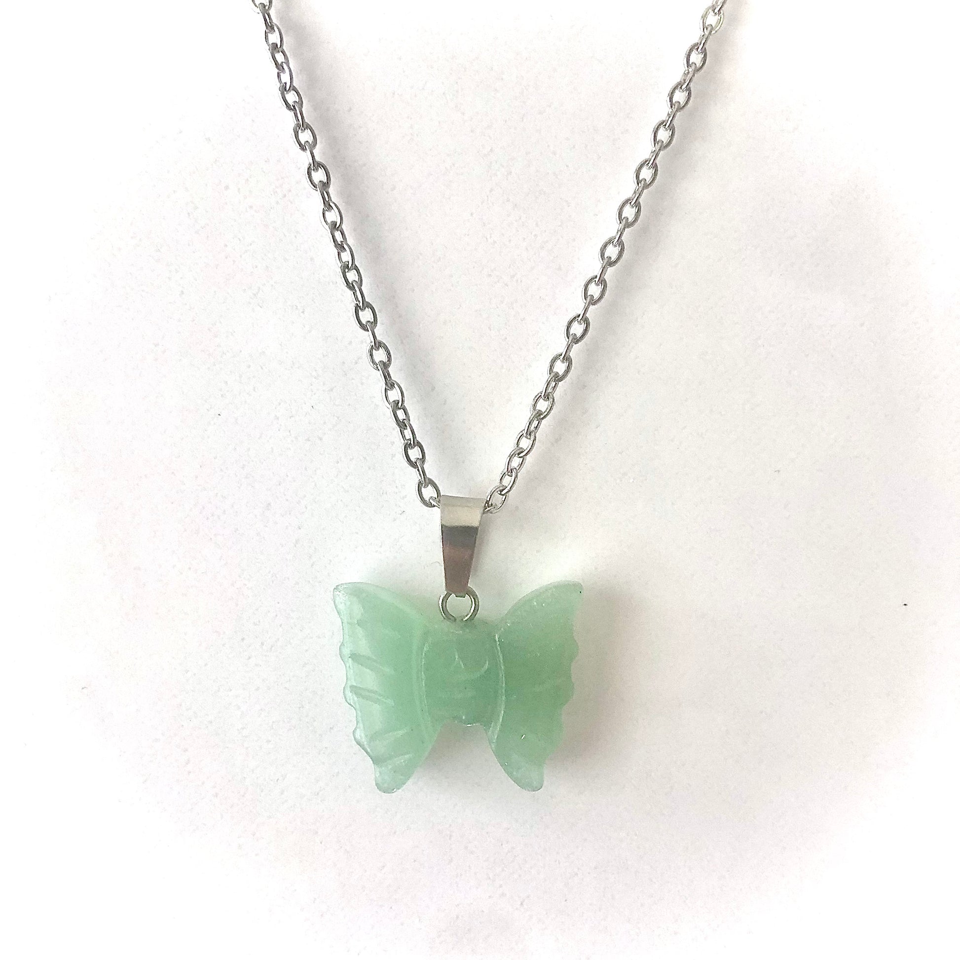 100% Real Genuine Green Aventurine Crystal Stone Butterfly Pendant on Stainless Steel Chain