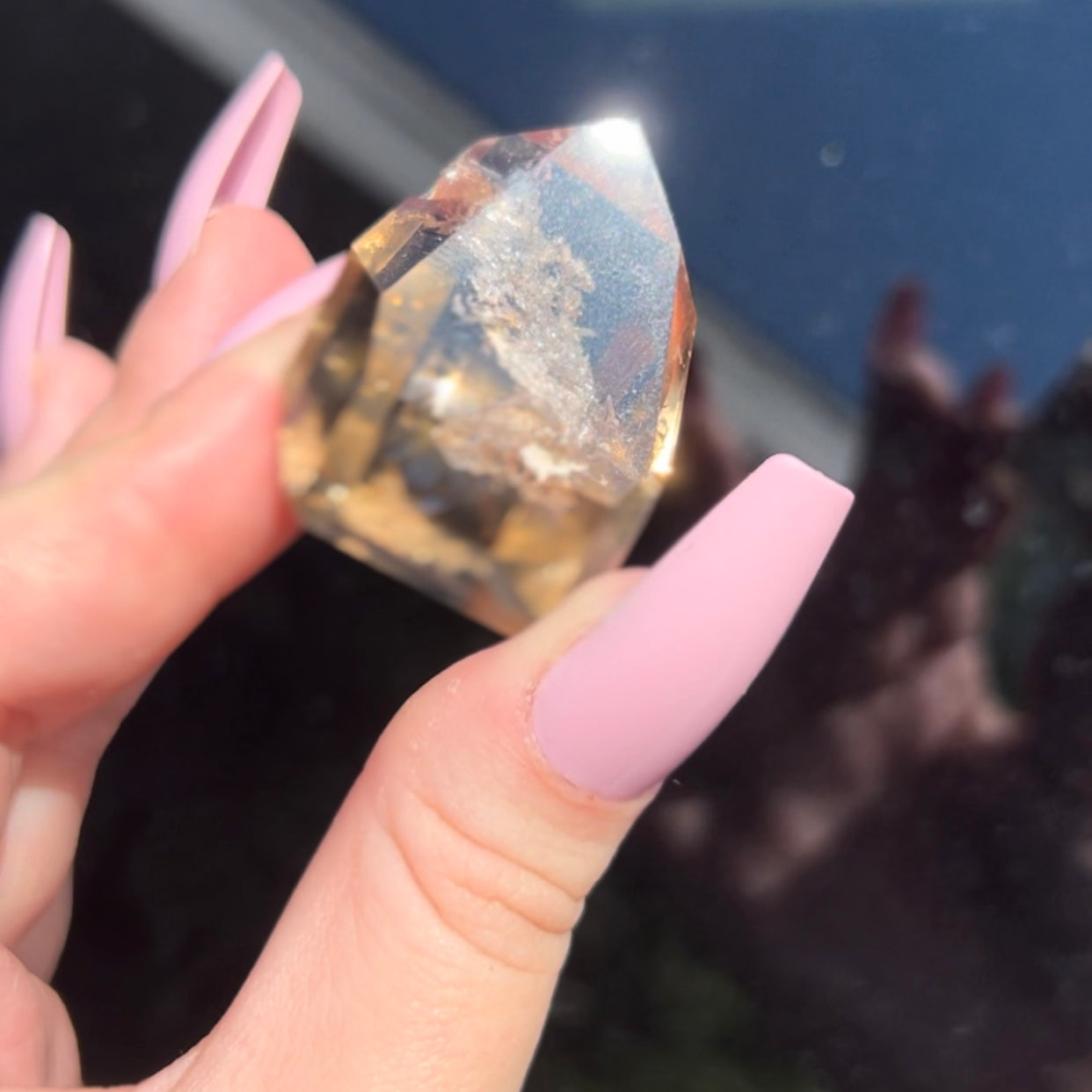 Garden quartz, also known as lodolite crystal have metaphysical properties, such as promoting healing, enhancing meditation, and helping with personal transformation. It will help enhance your sixth sense and is very calming.