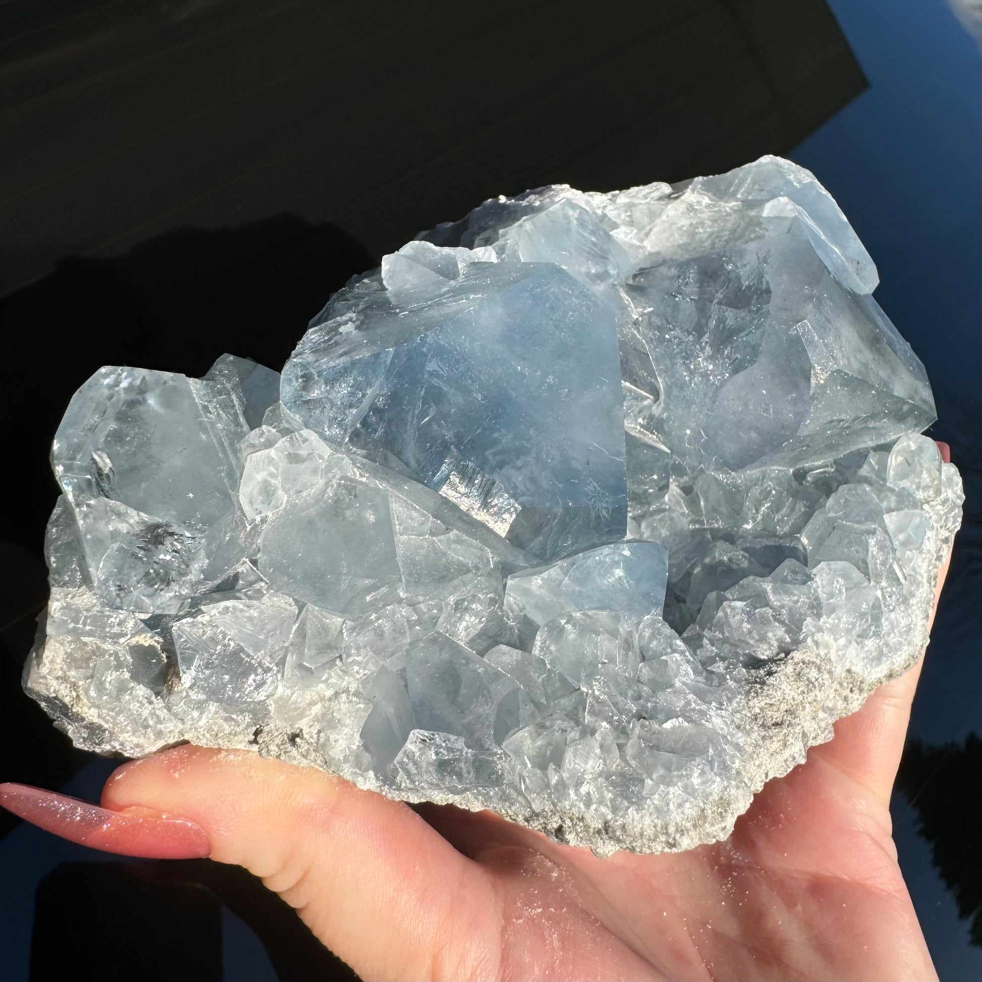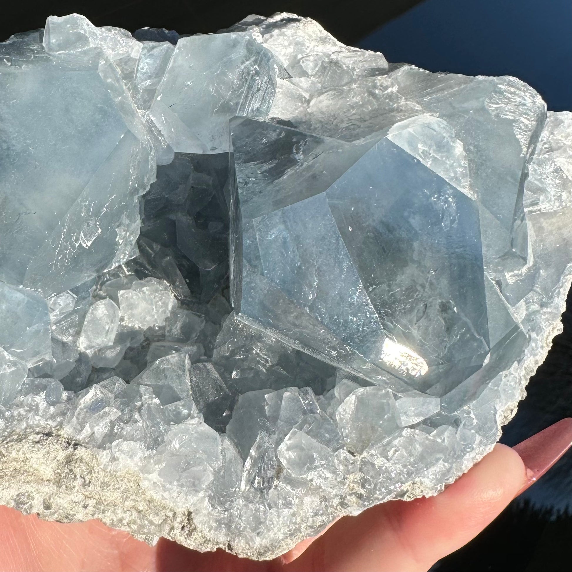 Beautiful saturated large points blue Celestite Natural Geode. Absolutely, breathtaking piece!
