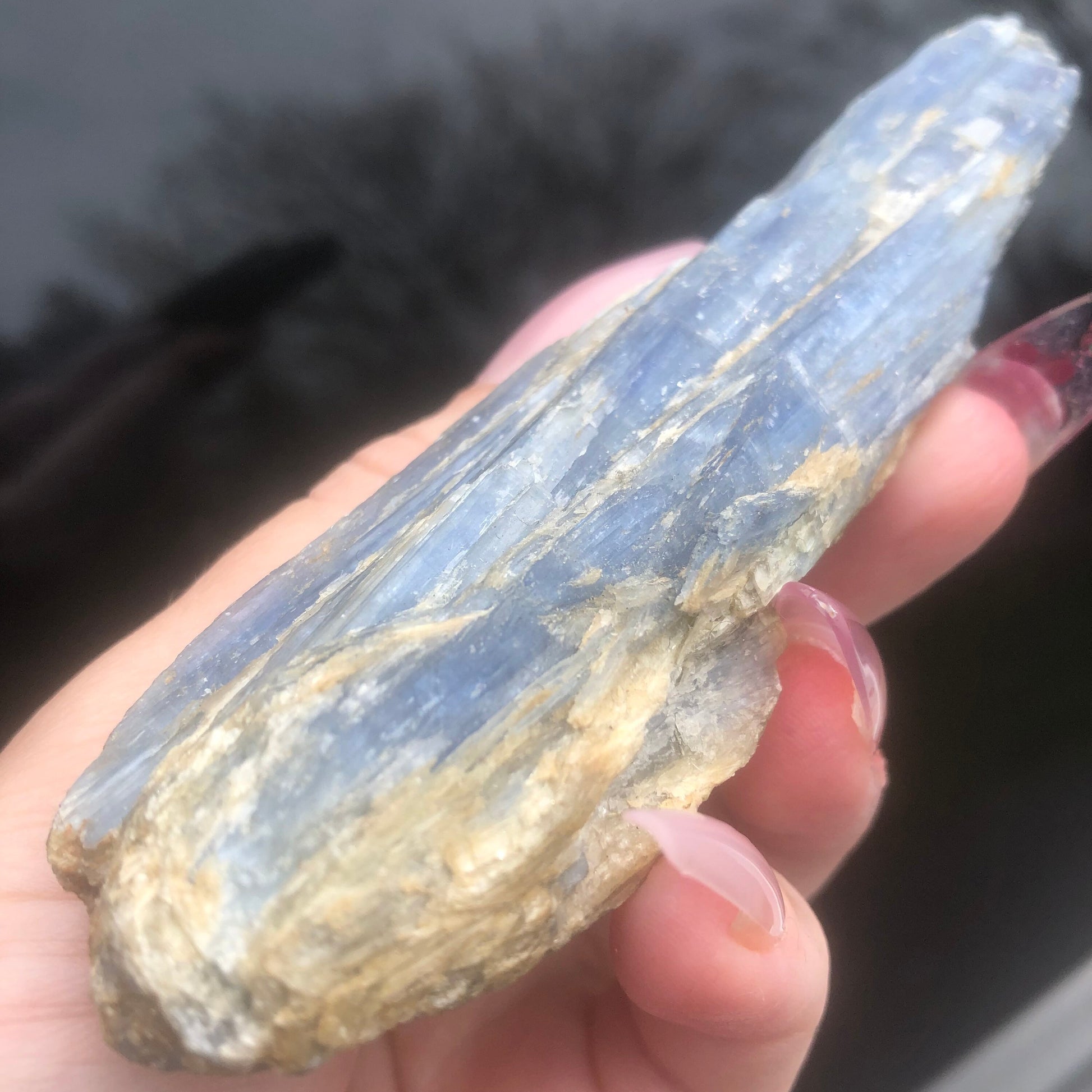Blue Kyanite opens the throat chakra, encouraging communication and self-expression. It cuts through fears and blockages, helping to speak one's truth. It is very useful for public speakers and performers as it strengthens the voice and heals the throat and the larynx. It is a wonderful stone that stabilizes emotions.
