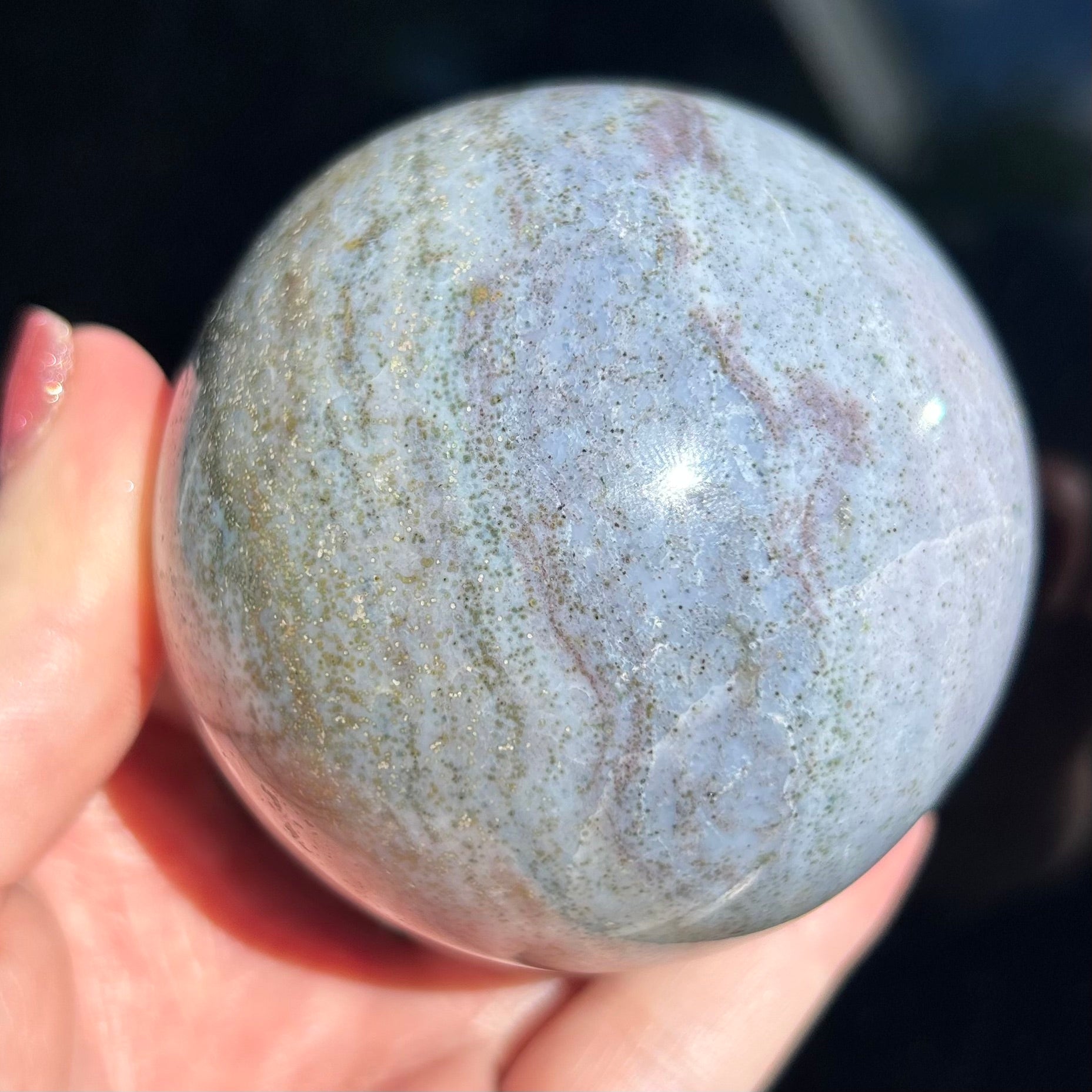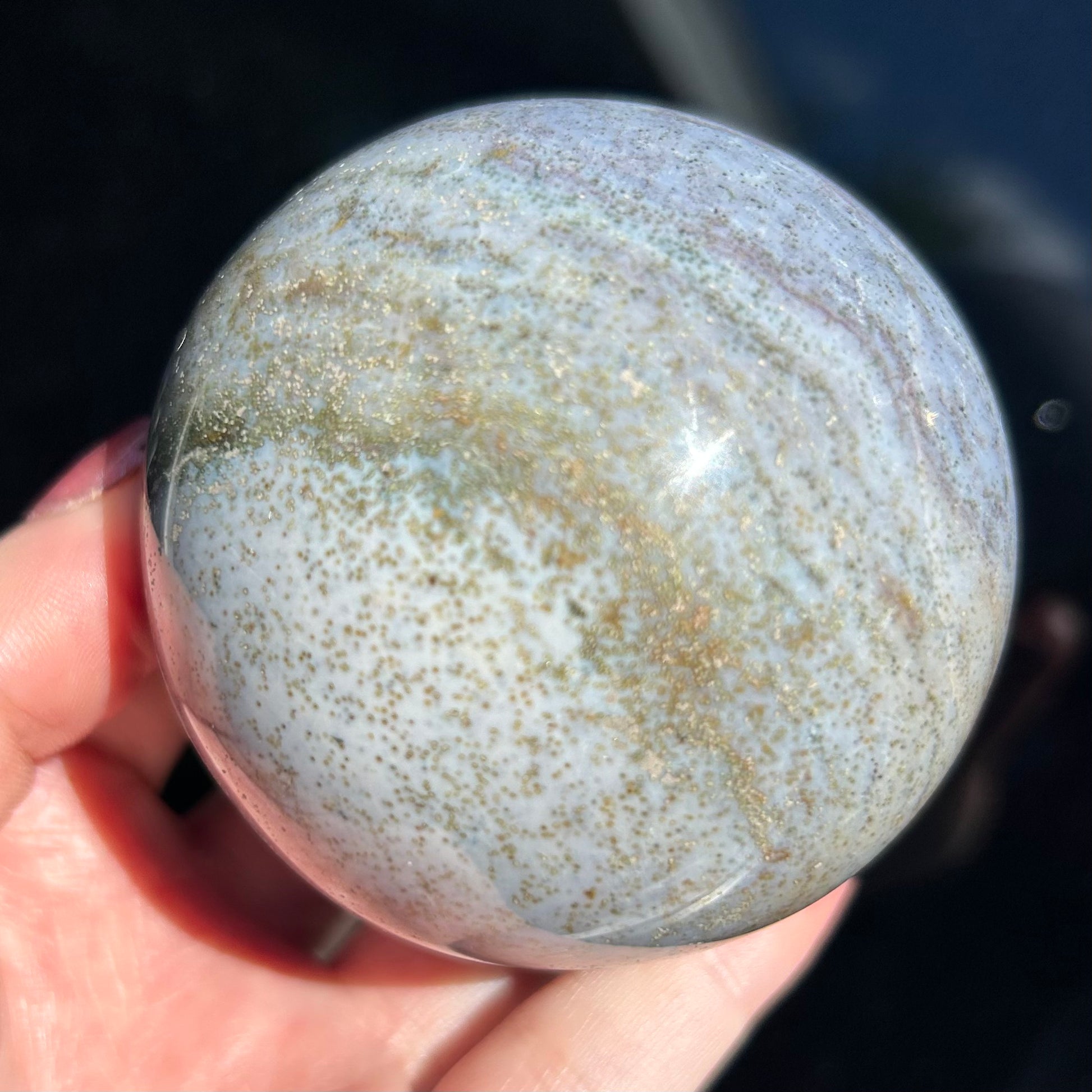 Like other forms of Jasper, Purple Ocean Jasper is believed to have metaphysical properties that promote relaxation, tranquility, and emotional healing. It is often used in crystal healing practices to bring balance and stability, as well as to enhance one's connection with the spiritual realm.