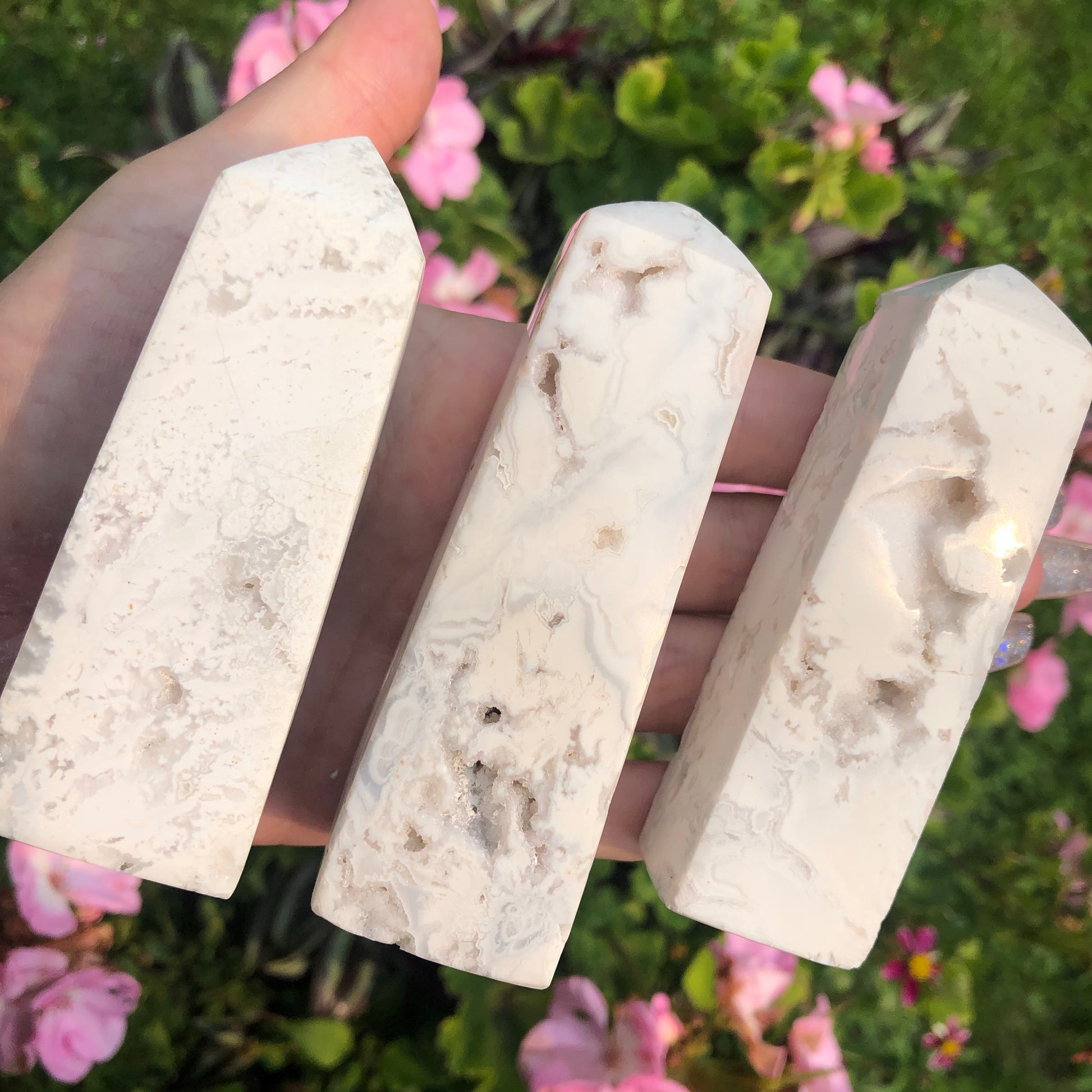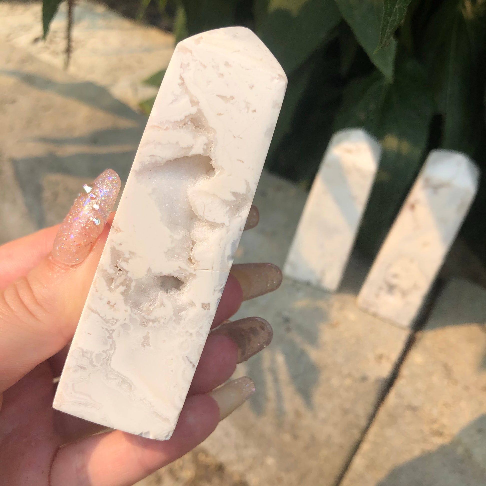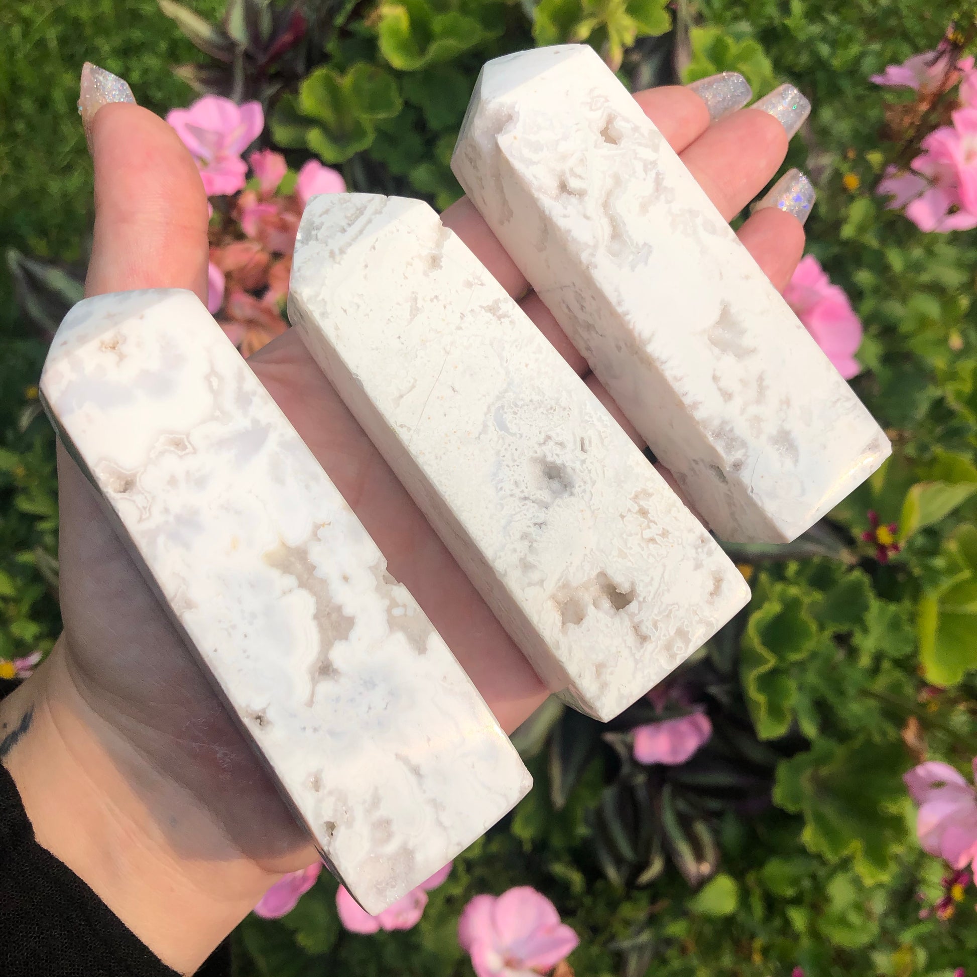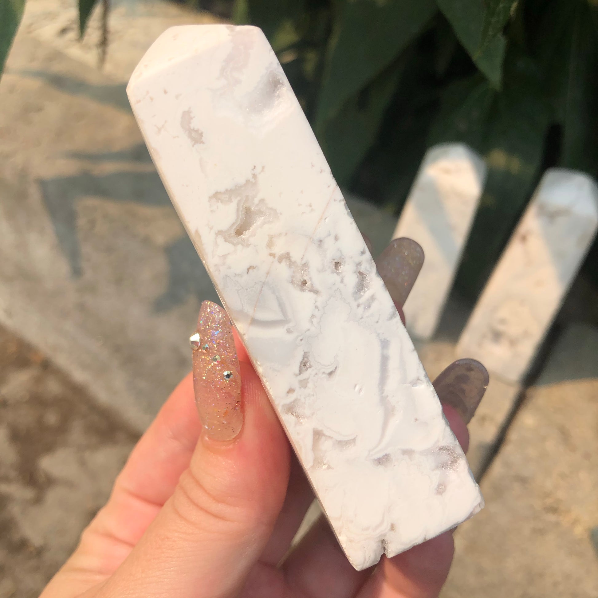 ONE High Grade Snow Agate Tower with Druzy